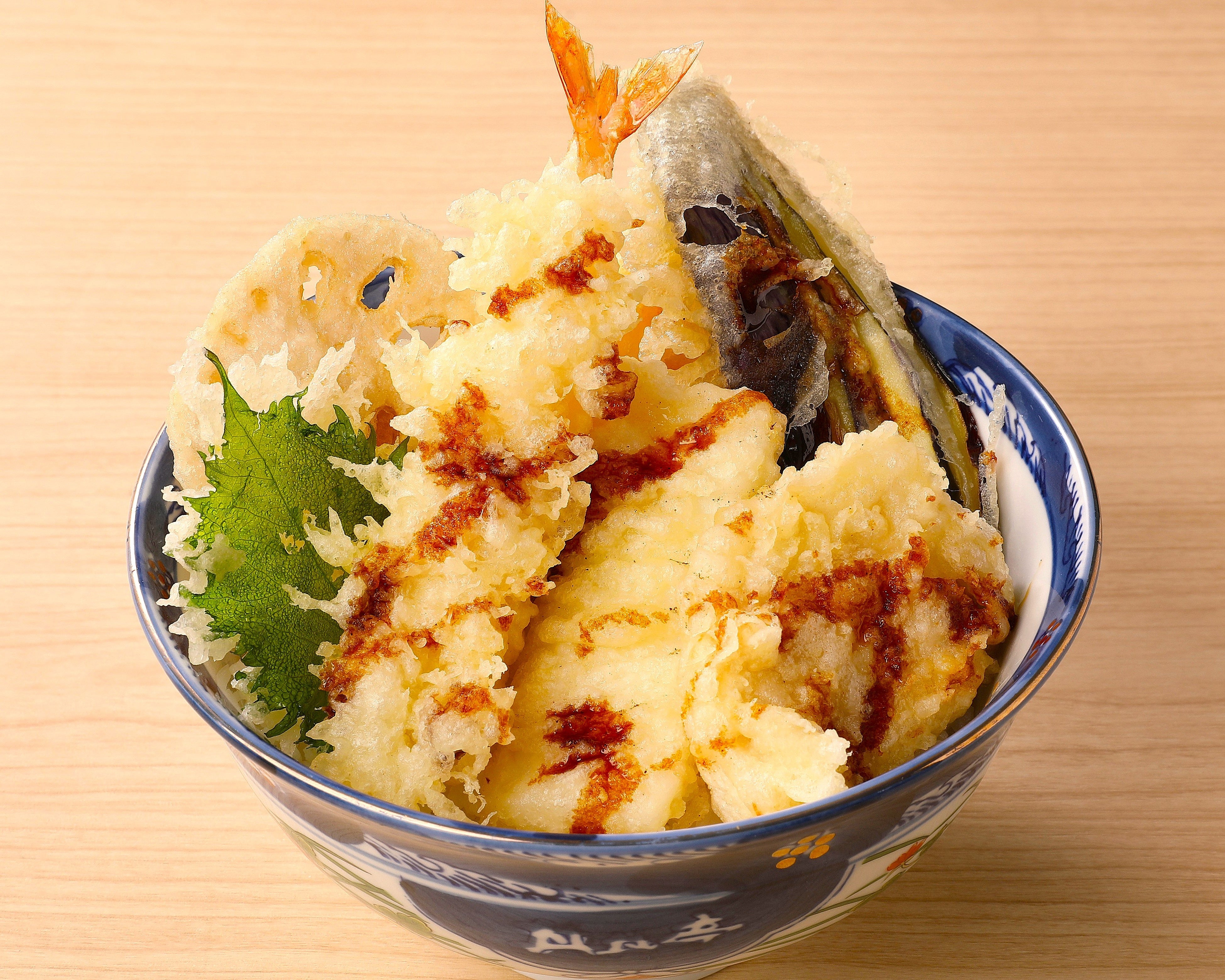 さまざまな食材の天ぷらを一度に味わえる、天ぷら好きにはたまらない丼ぶりです。