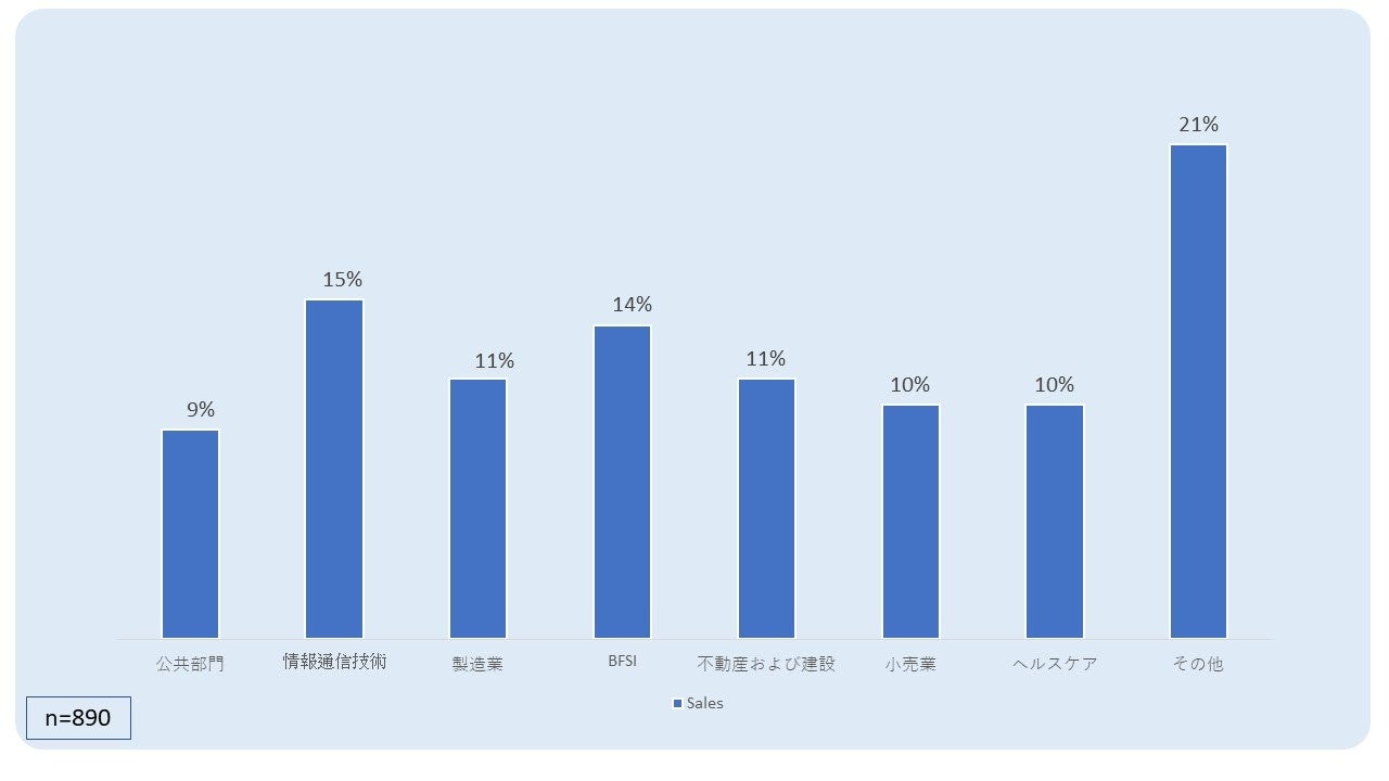 - 企業規模別では、大企業が50.6%で、中小企業を49.4%で、わずかに上回りました。調査対象となったエンドユーザーの業種は幅広く、情報通信技術(14.6%)、BFSI(13.5%)から、公共部門、製造業、不動産および建設業、小売業、ヘルスケア、その他の業種まで含まれています。