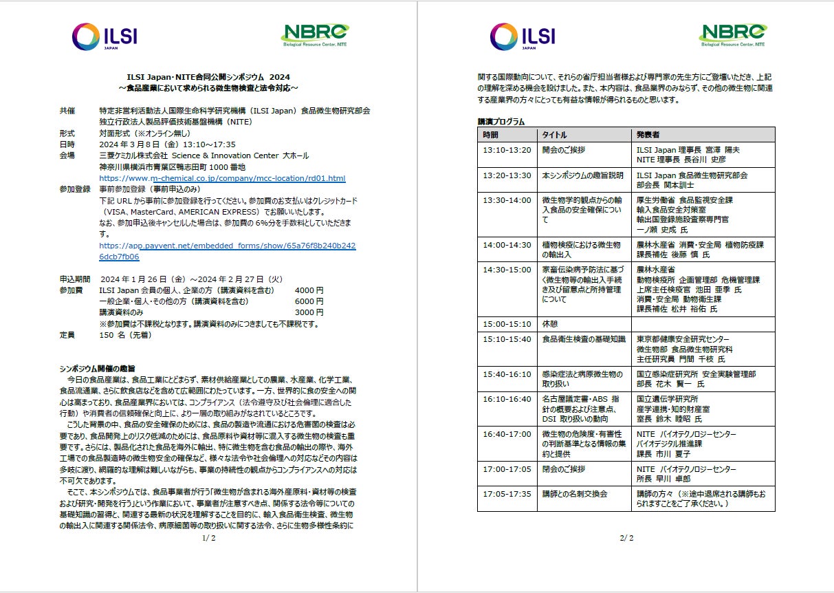 名 称:ILSI Japan・NITE合同公開シンポジウム 2024