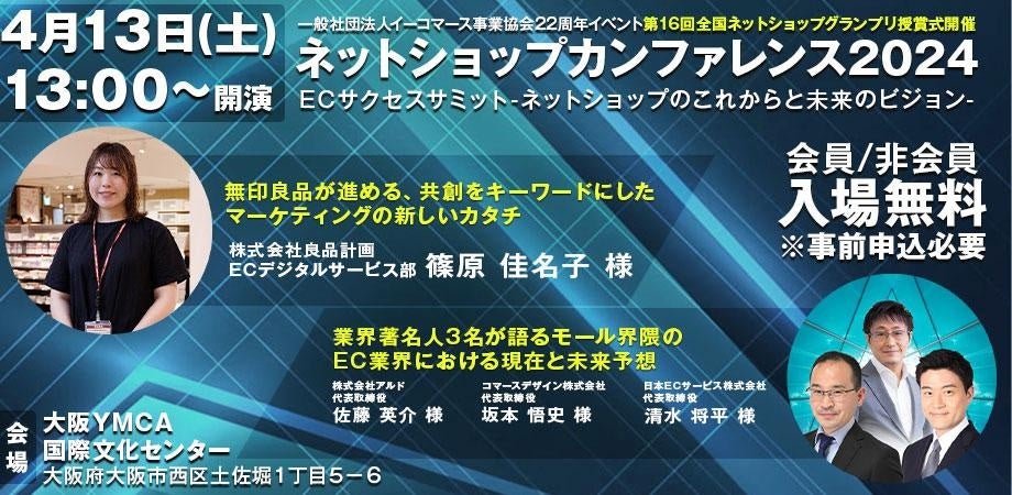 本カンファレンスでは、『ECサクセスサミット 〜ネットショップのこれからと未来のビジョン〜』をテーマに、「無印良品」を運営する株式会社良品計画やEC業界著名人がEC業界の展望を語ります。