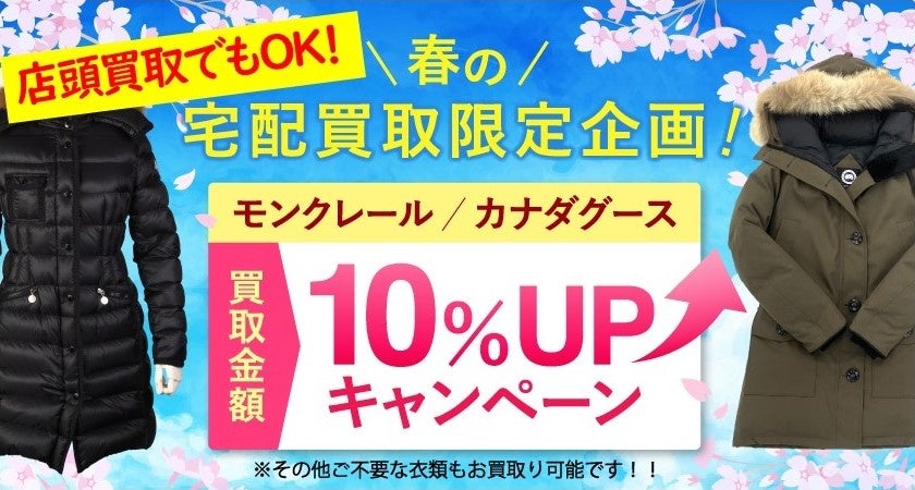 今回は4月に開催されたキャンペーンの延長と新たに店頭買取が対象として追加されましたことをお知らせします。ゴールデンウィークを機にお部屋の断捨離やモンクレール(MONCLER)、カナダグース(CANADA GOOSE)のご売却をご検討の方は是非、ゴールドプラザまでご相談くださいませ。
