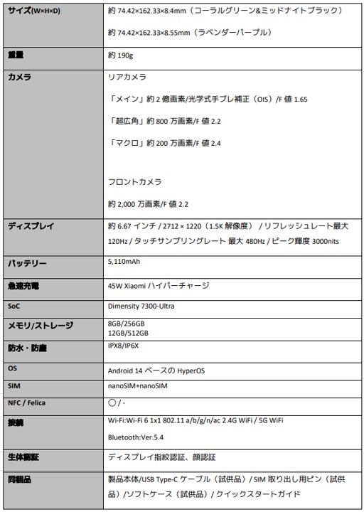 ■「Redmi Note 14 Pro 5G」製品特長