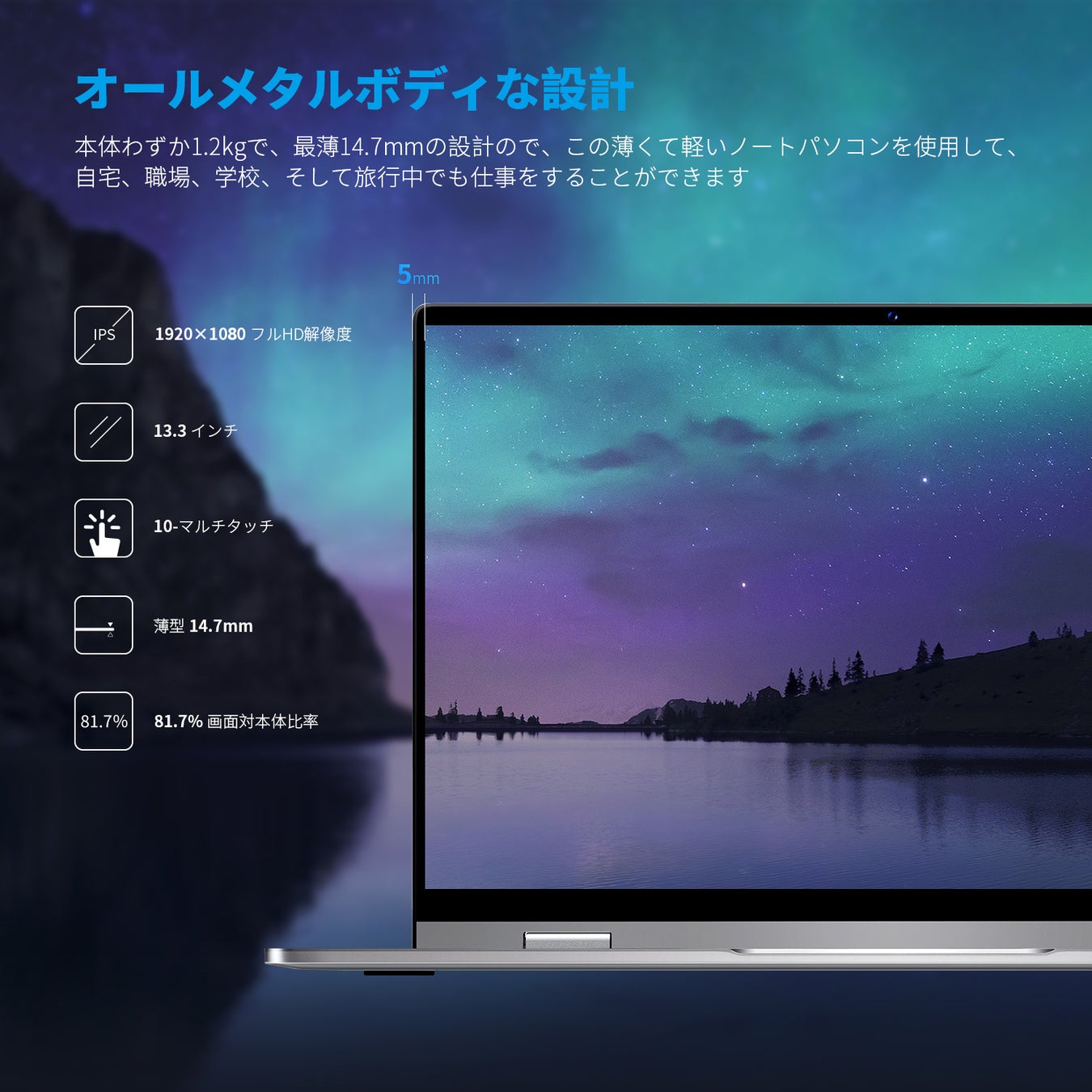 タブレットとノートパソコン 2 in 1】YUGA BMAX MaxBook Y13 2 in 1ノートパソコン 360度回転可能、13.3インチ大画面 FHD (1920 x 1080) IPS HD ディスプレイ、折りたたみ式コンピューター、クリック可能な画面を備え、10点タッチ機能、内蔵 2 チャンネルスピーカー、よりよいモデルで作業できます。ノートパソコン型やタブレット型という二つの状態で使用可能、いつでもどこでもモードを切り替え、約1.0kg、持ち運びが便利、学生・初心者向け 仕事・オンライン授業・会議用 一般家庭用おすすめのノートPC。