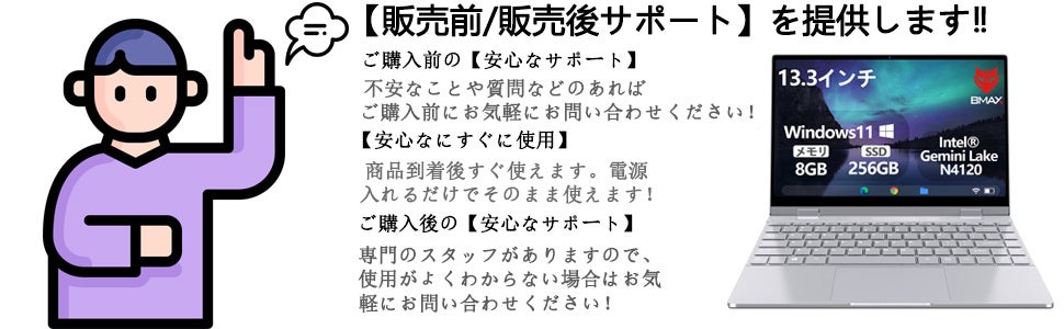 DDR 8GB+SSD 256GB】BMAX Y13 laptopは 8GBのLPDDR4大容量ランニングメモリを搭載し、アプリケーションやゲームをすばやく切り替えることができます。256GBの高速SSDが内蔵されています。MicroSDカードで1TBのストレージに拡張可能、お気に入りの音楽、映画、ゲーム、アプリケーションを自由にダウンロードできます。【その他の機能】、2.4G/5G wi-fi モデル、デュアルモード接続、より強力な適応性、Bluetooth 5.0モデル Bluetoothマウス、Bluetoothキーボードへの接続をサポート、さまざまな環境での高速ネットワーク接続をサポートします。