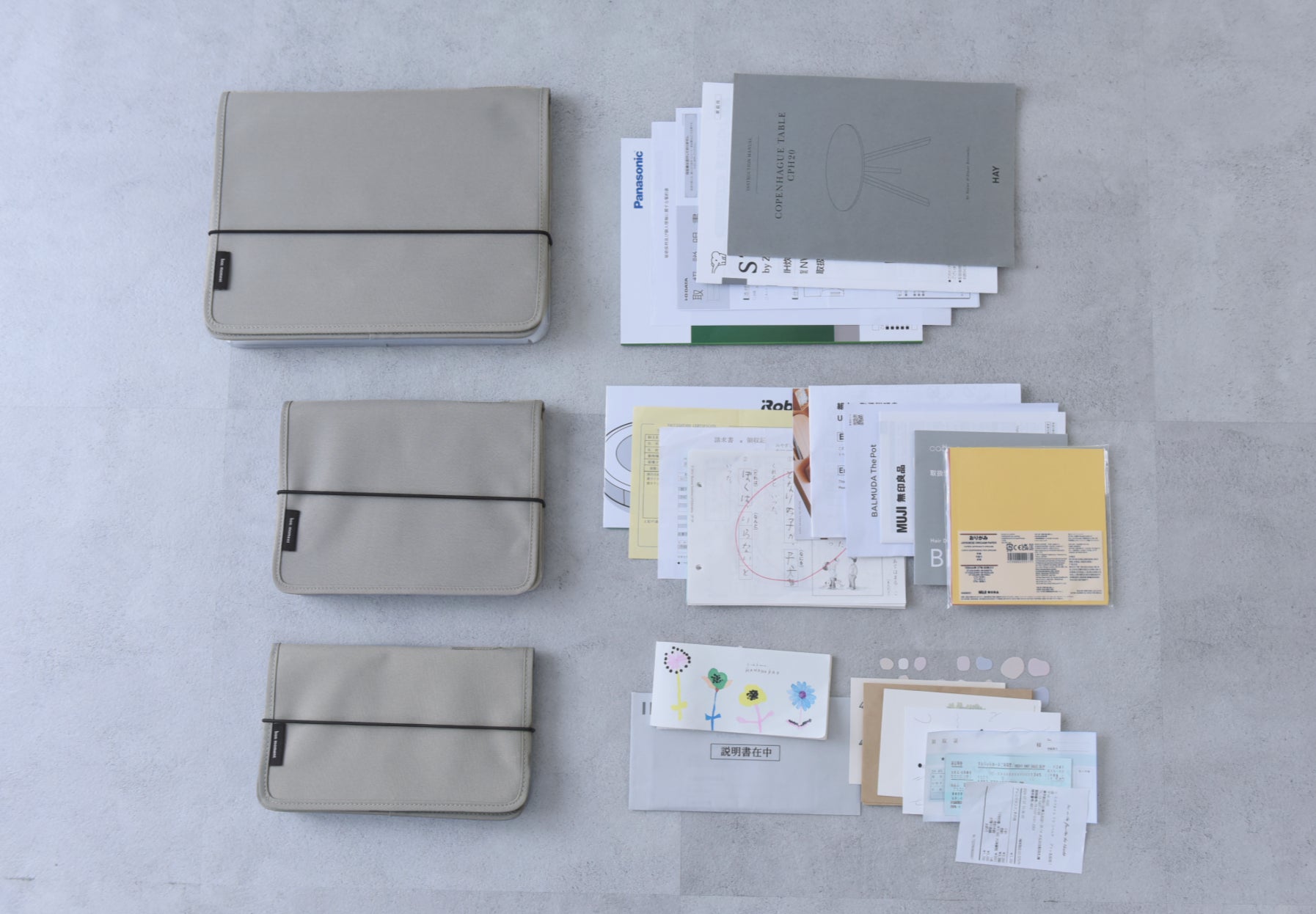 従来モデルのLサイズは、A4書類にぴったりのサイズ。家具や家電の取扱説明書や保証書、子どもの学校プリントなども、折らずに保管しておくことができます。