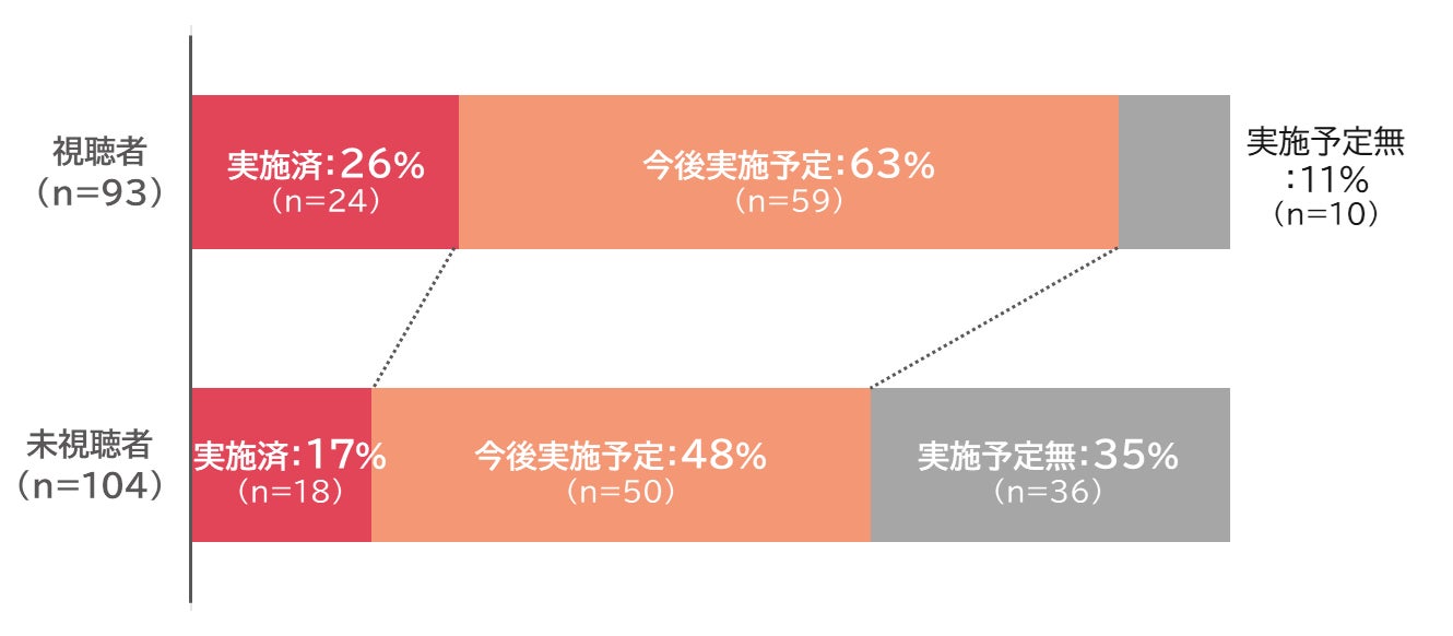 具体的には、「すでに実施した」「今後実施予定」と回答した割合の合計が89%と、未視聴者の65%を24ポイント上回りました。