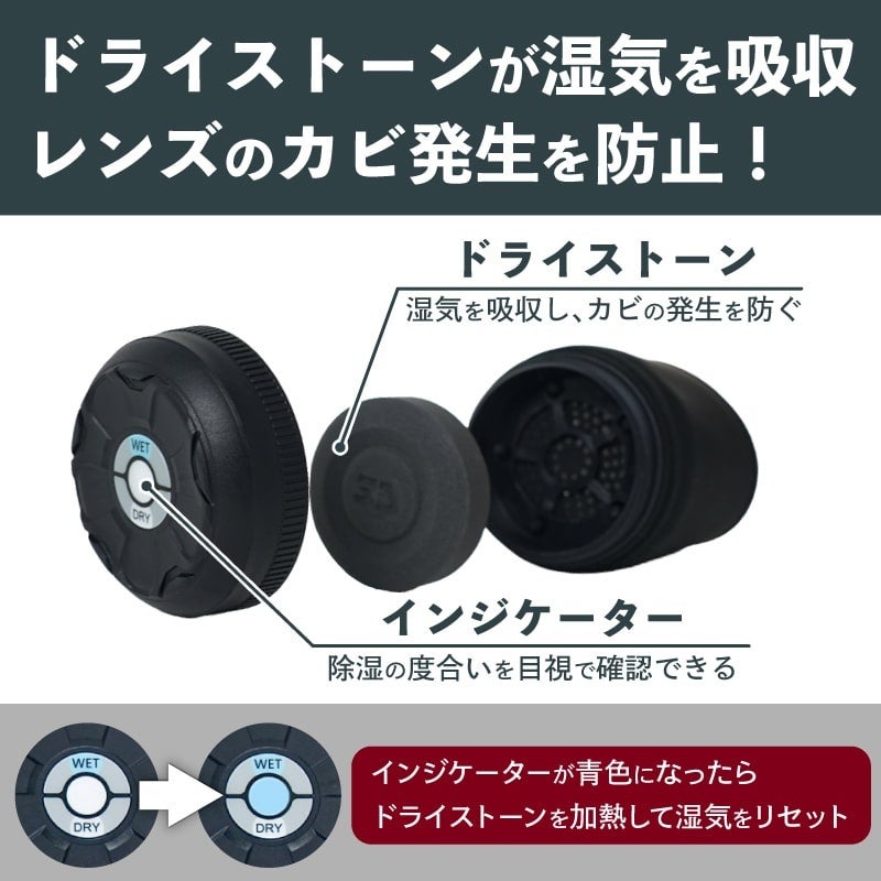 湿度を吸収するドライストーンを内蔵したレンズキャップ型