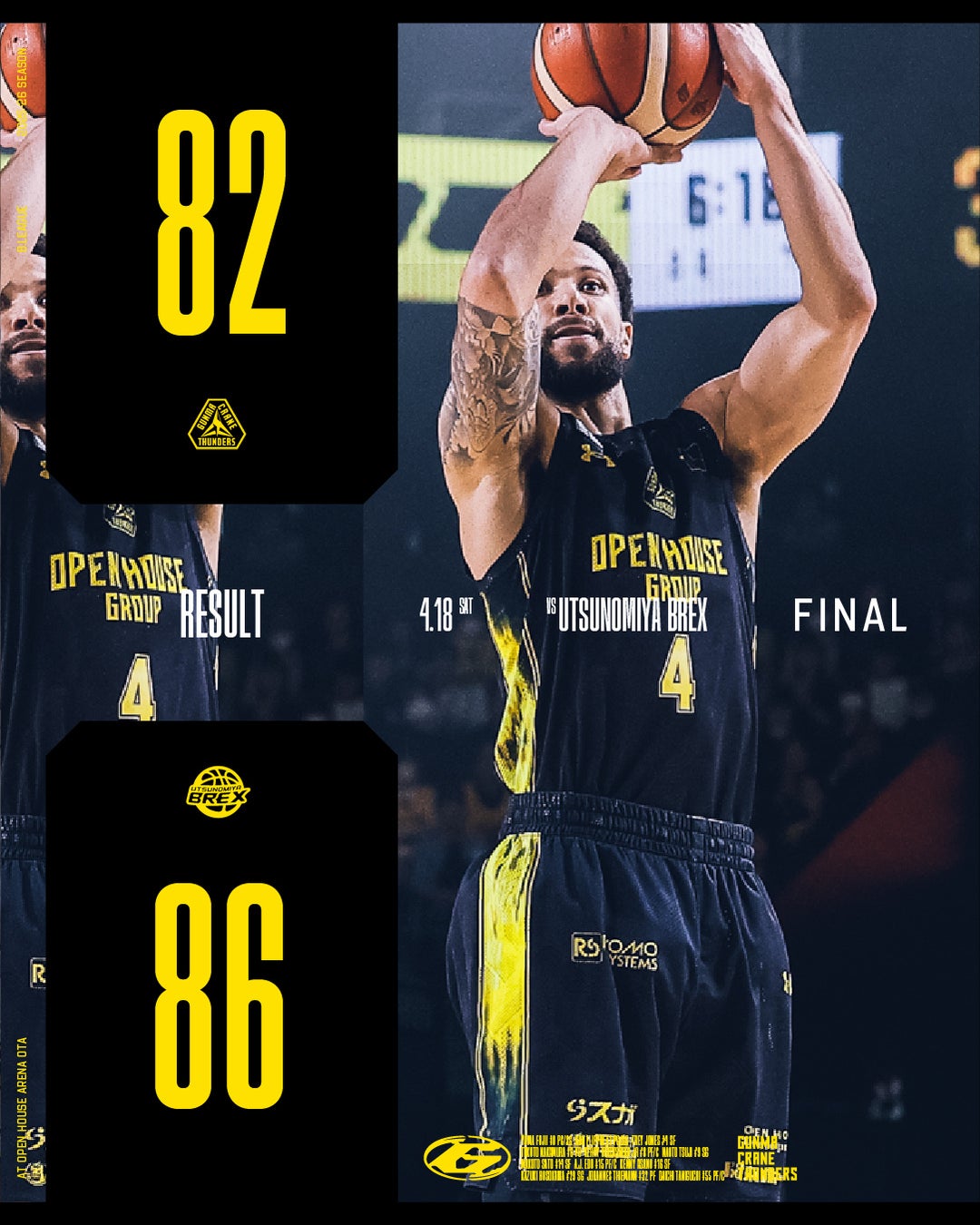 【群馬クレインサンダーズ:試合結果】4/18(土) vs 宇都宮ブレックス りそなグループ B.LEAGUE 2025-26シーズン