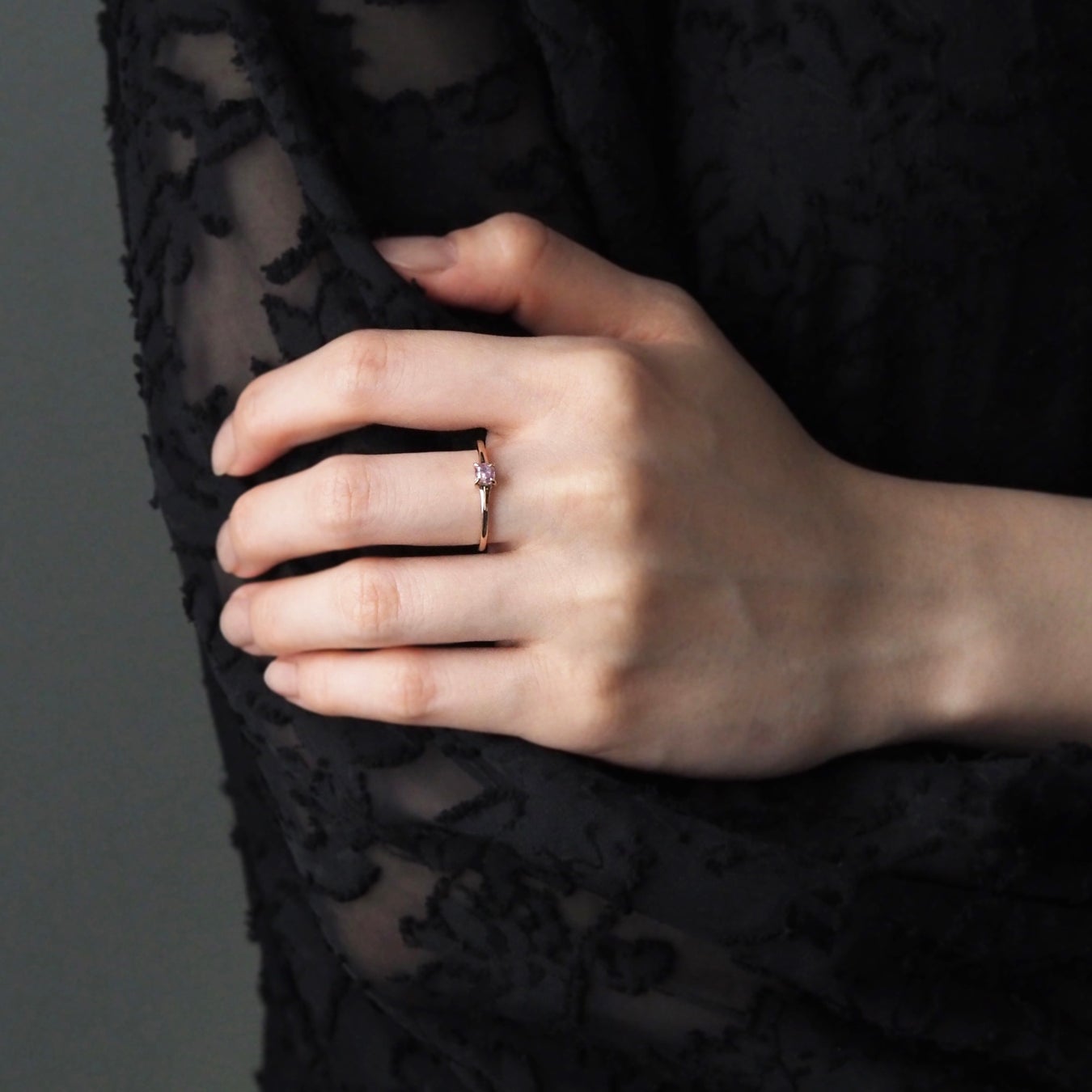 ソーティング付きのルースを使用した「リーベルトラッド・シリーズ」より、淡くやさしいピンクから、深みのあるパープルがかったピンクまで、さまざまなニュアンスのピンクダイヤモンドが登場します。石の個性に合わせて一点ずつ仕立てられたシンプルなデザインは、重ね着けにも映える洗練された佇まい。パーセルならではの、素材を活かしたジュエリーの魅力をお楽しみください。