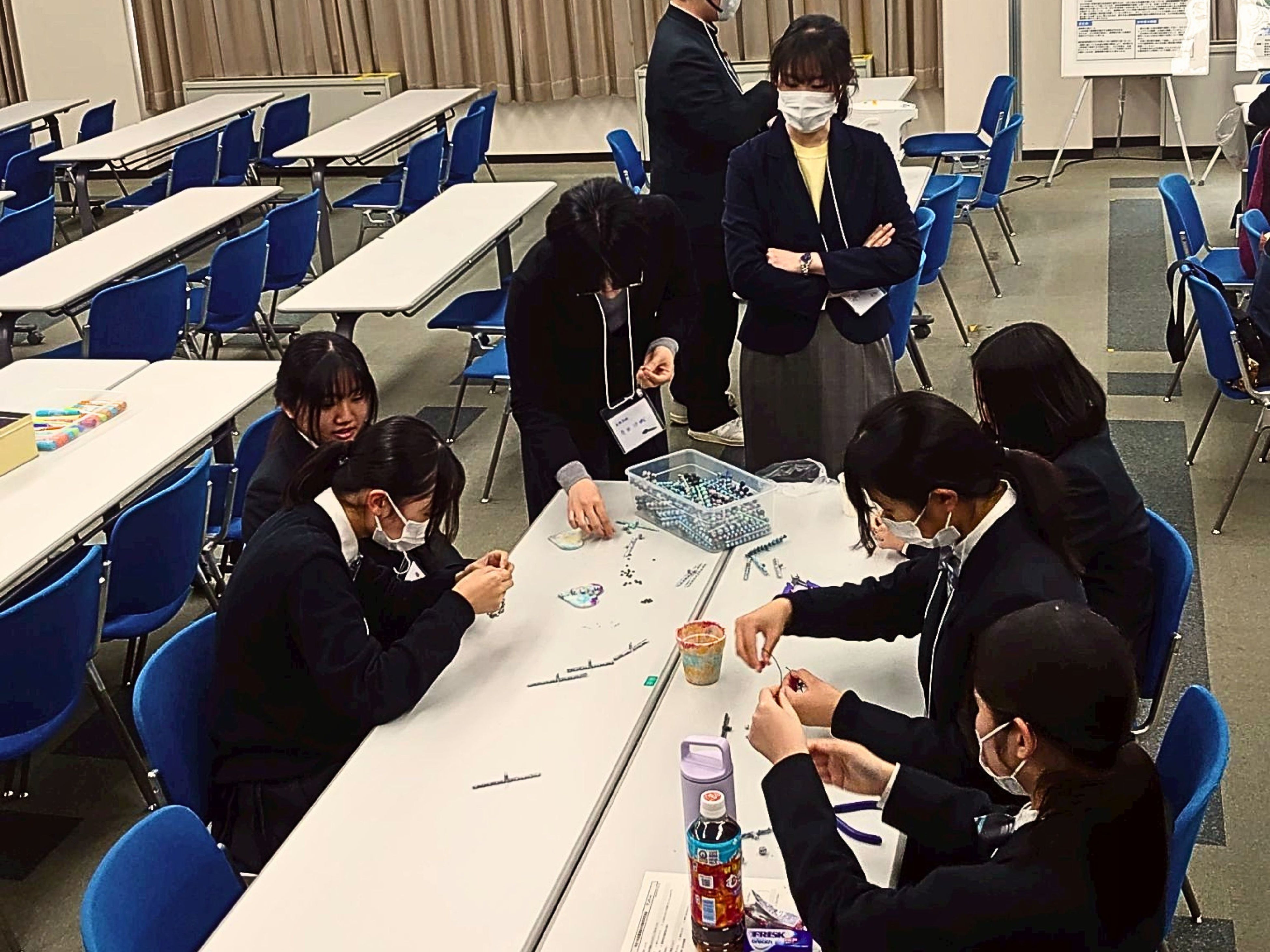 「希望の絵馬づくり」では廃ペットボトルキャップから作ったアップサイクル絵馬に未来への想いを綴り、ツリーに飾りました。「ビーズブレスレットづくり」ではアップサイクルビーズを使ったブレスレット制作を体験。参加した高校生たちも夢中で手を動かしました。