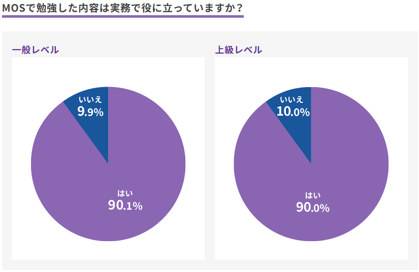 ● MOS合格者の90%が「MOSのスキルが実務で役に立っている」と回答