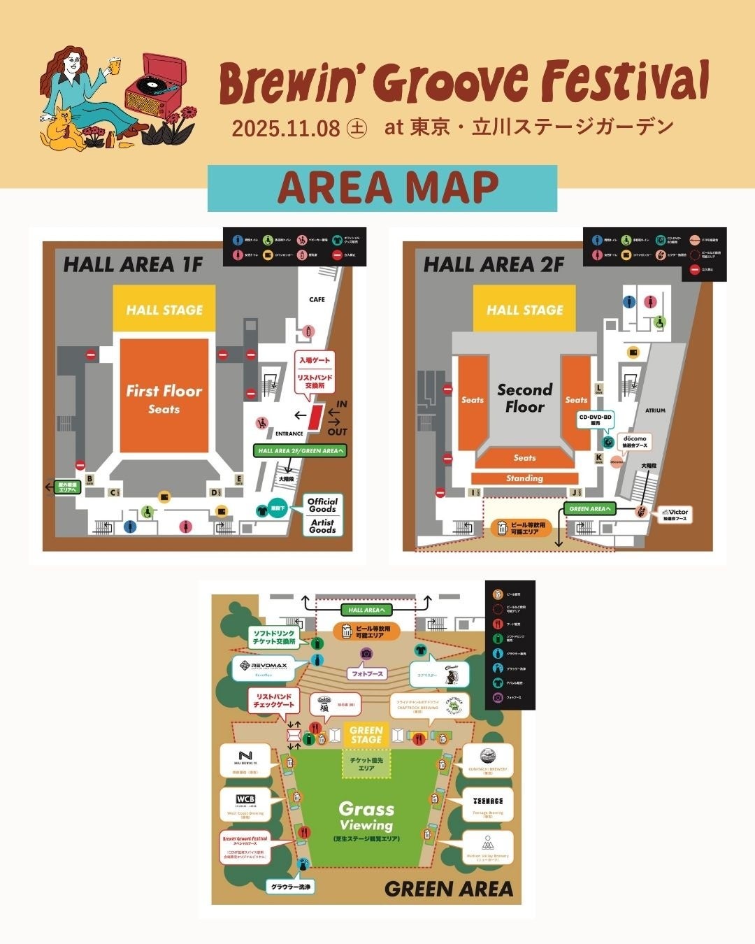 ホール内の「HALL STAGE」および隣接の芝生エリアにDJやアコースティックライブなどを行う「GREEN STAGE」の2ステージ制での開催となる本フェス。