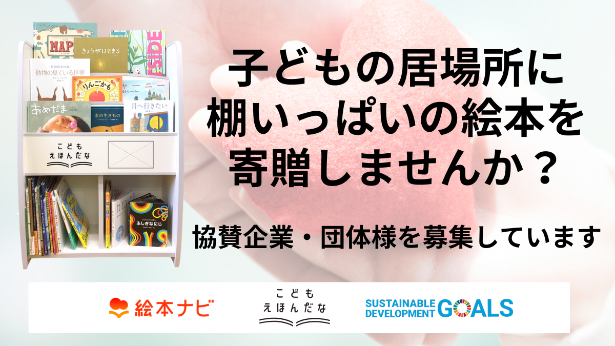 協賛いただくことで、これらの子どもの居場所へ、絵本ナビのプロが選ぶ棚いっぱいの絵本を企業・団体様名義で寄贈することが可能です。