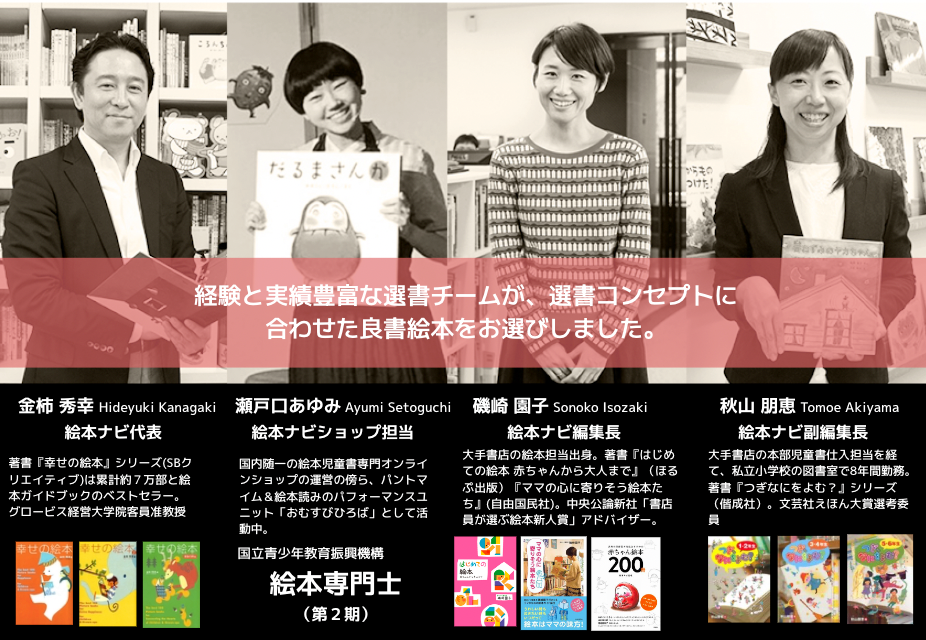 ・絵本ナビ編集長をはじめとした経験と実績豊富な選書チームが、選書コンセプトをもとに良書絵本を選びました。