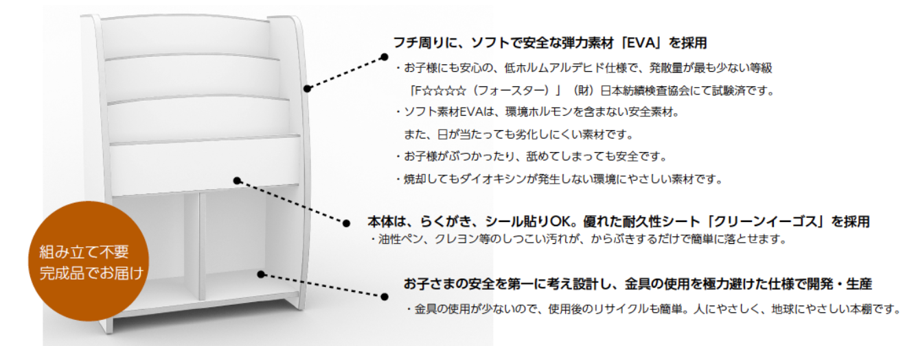 ・フチ周りにやわらかいスポンジ素材のEVAを使用し安全。汚れに強く、長くご使用いただけるつくりになっています。