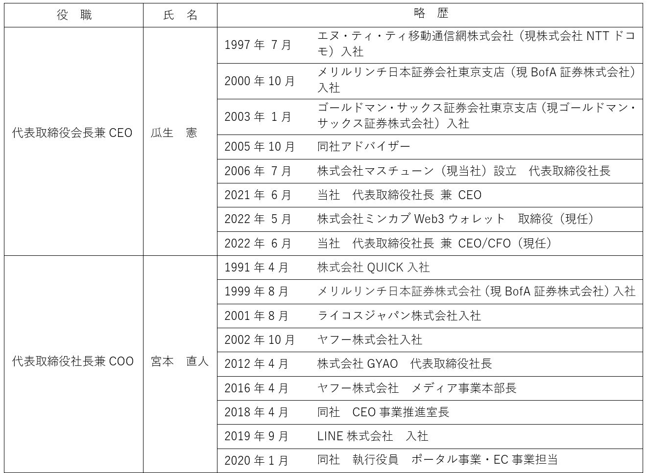 代表取締役社長 兼 CEO/CFO : 瓜生 憲
