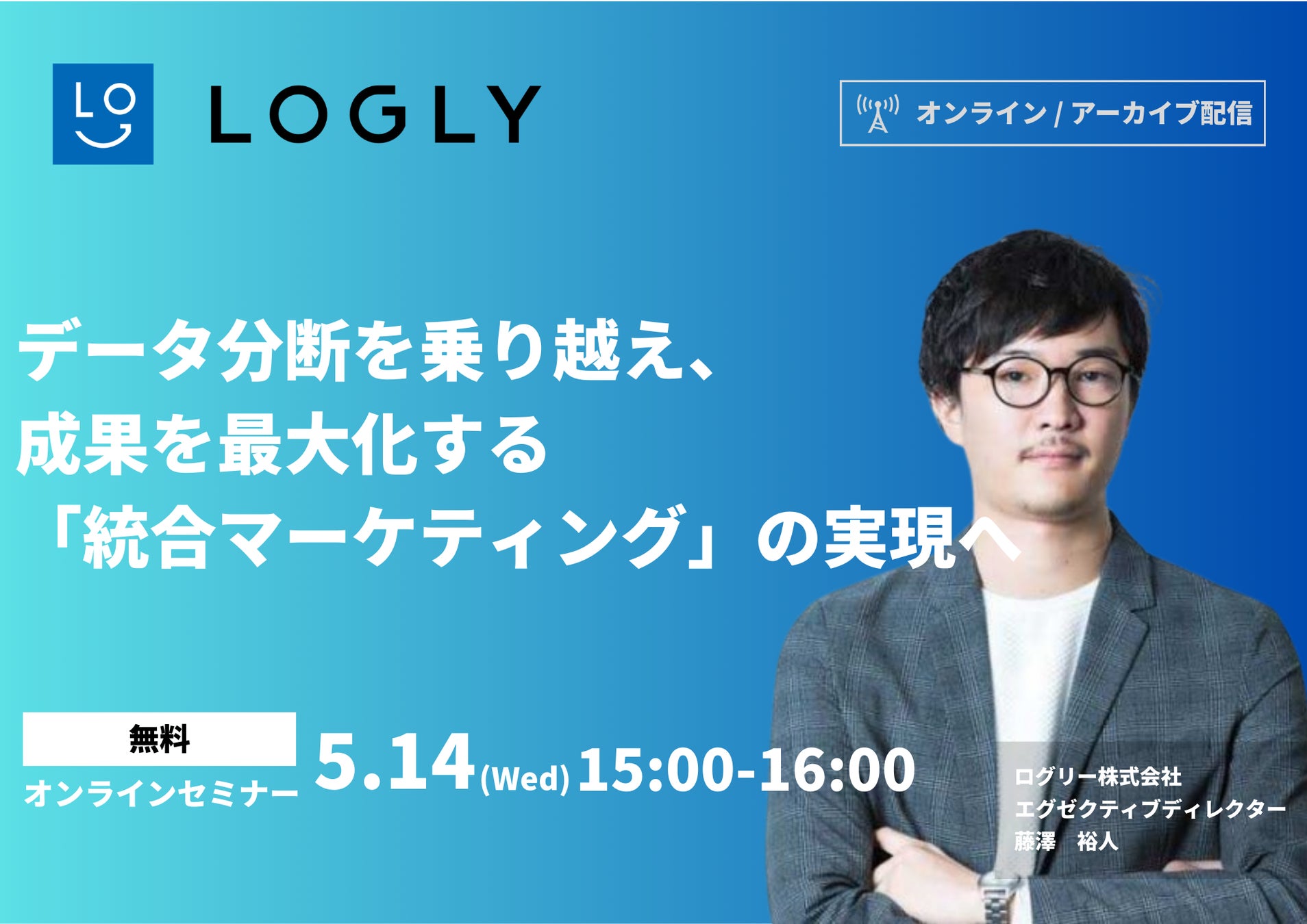 1st Party Dataを軸に顧客接点を統合・最適化する統合マーケティング基盤※1「LOGLY Marketing Nexus」を提供するログリー株式会社(本社:東京都渋谷区恵比寿一丁目19-15 ウノサワ東急ビル7階、代表取締役社長:吉永浩和、証券コード:6579、以下、ログリー)は、「データ分断を乗り越え、成果を最大化する『統合マーケティング』の実現へ」というテーマの無料オンラインウェビナーを2025年5月14日(水) 15:00より開催いたします。