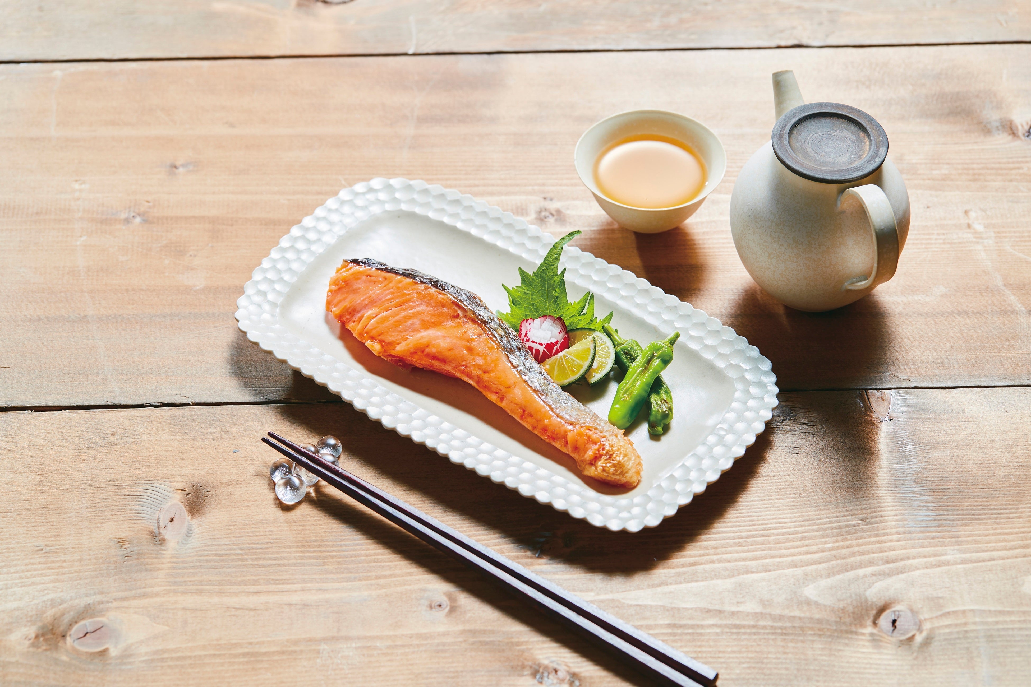 下ごしらえした冷凍食品を凍ったまま角皿にのせ、焼き上がるまで一気に調理ができます。冷凍しておいた塩鮭4切れが「凍ったままレジグリ」なら約18分※3で焼き上がります。