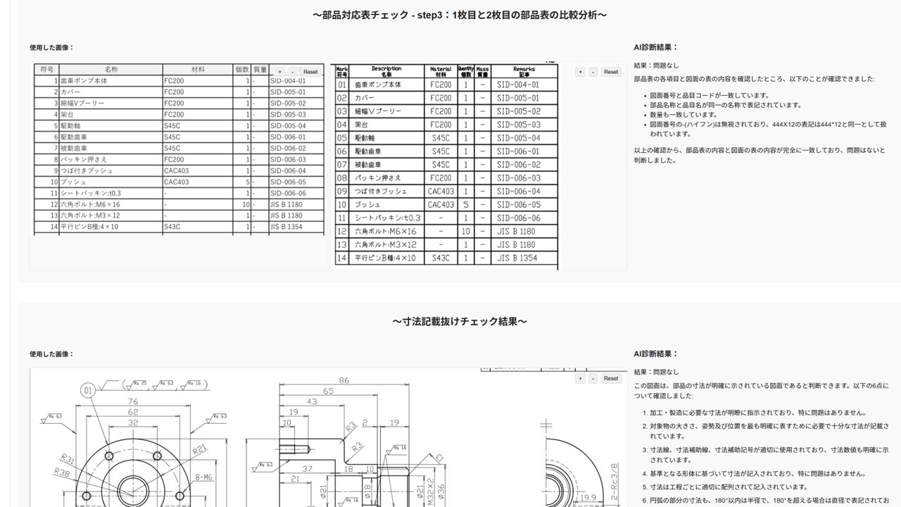 複数ドキュメント間の部品名、図面番号、型番の整合性チェック