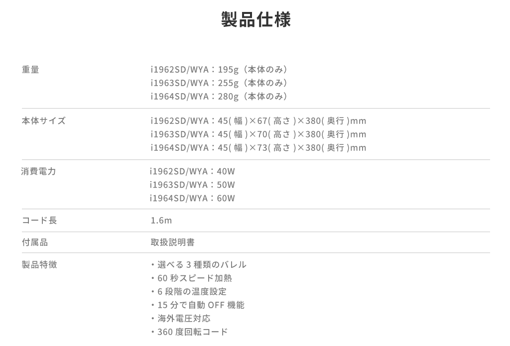 バリエーション豊富だから髪の長さや、なりたいスタイルに合わせて選べるアレティのコテ(カールアイロン)。19/25/32mmで展開するエントリーモデルは傷まないか心配、上手く巻けないという方必見!