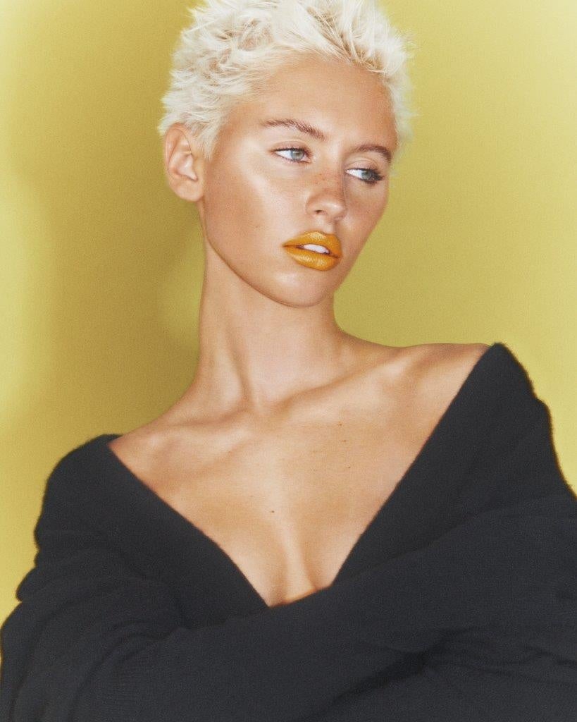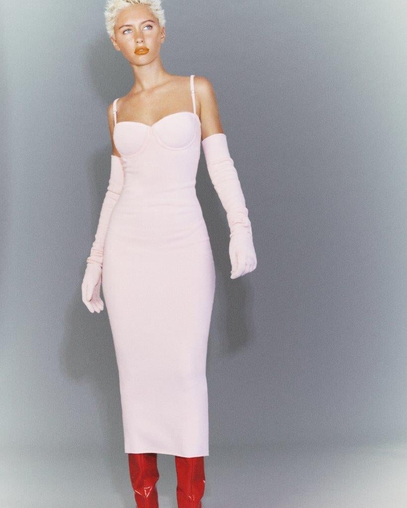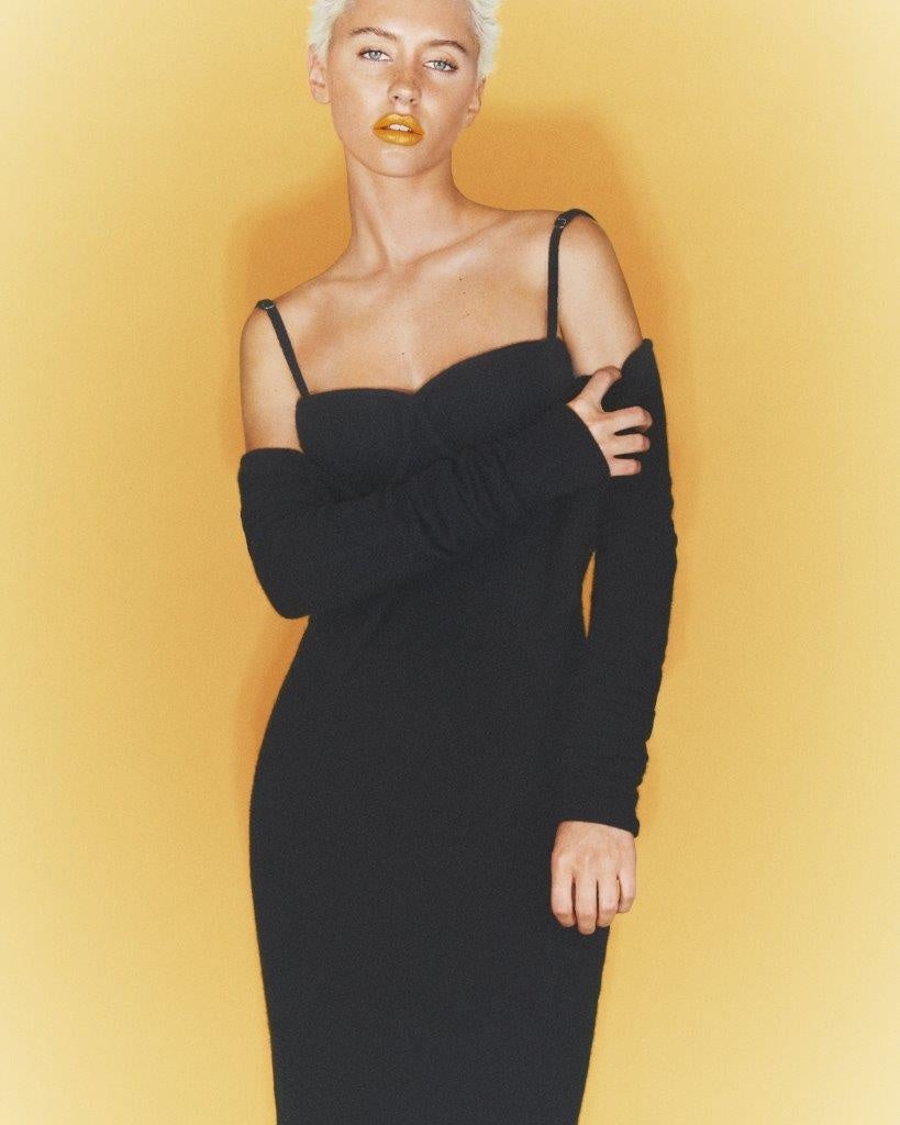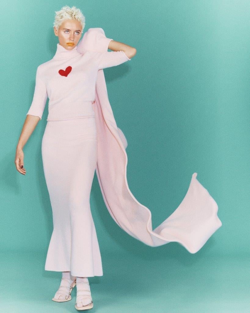 ハリウッドのアイコンである マリリン・モンローの究極のフェミニティはジュード・ロウとサディ・フロストの娘であるアイリス・ロウのウルトラ コンテンポラリーな“言語”へ変換され、ニットウェアのトータルルックが完成しました。