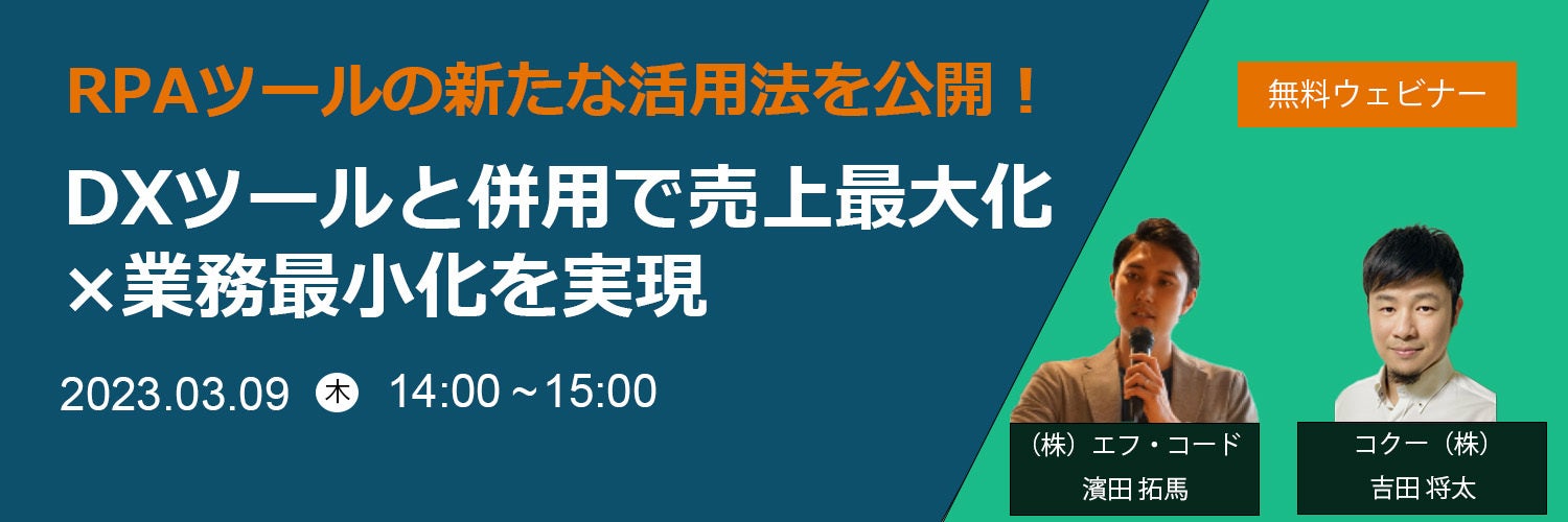 【3/9開催ウェビナー】RPAツールの新たな活用法を公開!DXツールとの併用で売上最大化×業務最小化を実現