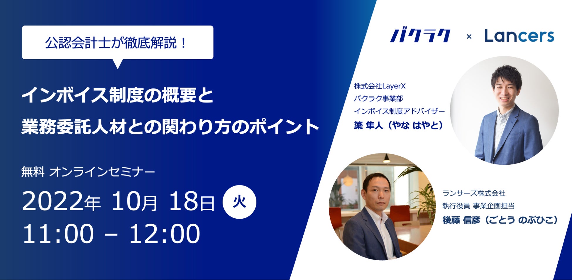 【10月18日(火)11:00~12:00 開催 ランサーズ x LayerX 企業向け「インボイス制度」解説セミナー】