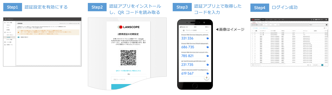 許可されていない第三者からのアクセスを防ぐ二要素認証を実装。ログイン時、アカウント・パスワードによる認証に加えて、認証用のモバイルアプリで生成された確認コードの入力を要求することで、不正アクセスやなりすましを防止します。