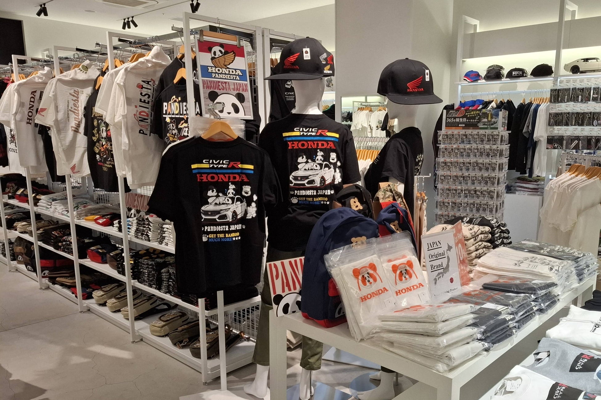 店内では、“ドリフトキング”こと土屋圭市氏のアパレルコレクションをはじめ、CIVICやRX-7などのCARデザインTシャツや、ユニークなHONDA×PANDIESTA JAPANアパレルなどを取りそろえています。また、海外でも人気の高い日本アニメのキャラクターをデザインに取り入れたアパレルやクルマに関連したアイテム、さまざまなミニカーをラインアップしています。免税対応店舗として、訪日外国人のお客様にも快適にお買い物いただける環境を整えています。