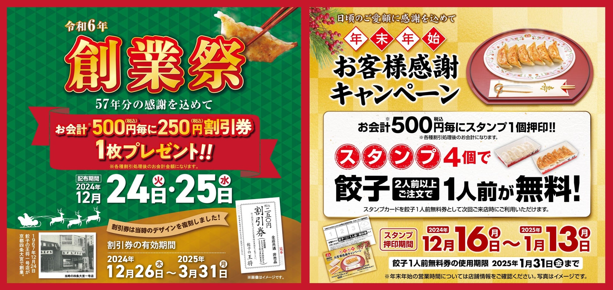 【餃子の王将】クリスマス&年末年始もおいしくお得に!!『創業祭』&『年末年始お客様感謝キャンペーン』を開催!!