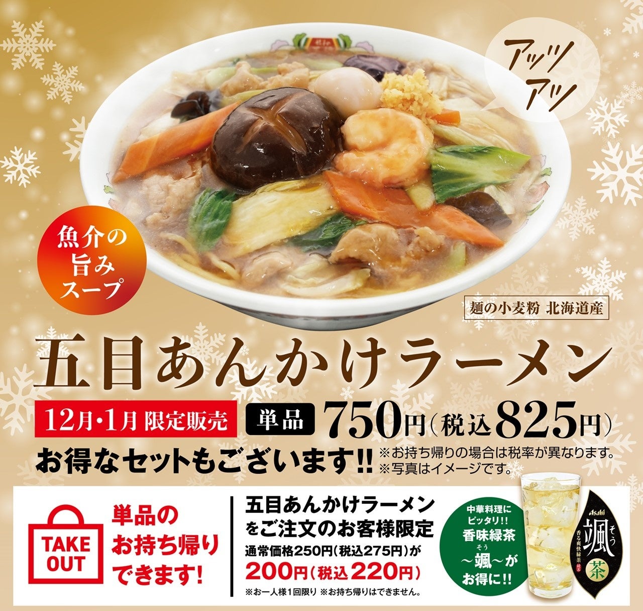 12月・1月限定の大人気メニュー「五目あんかけラーメン」も販売中!