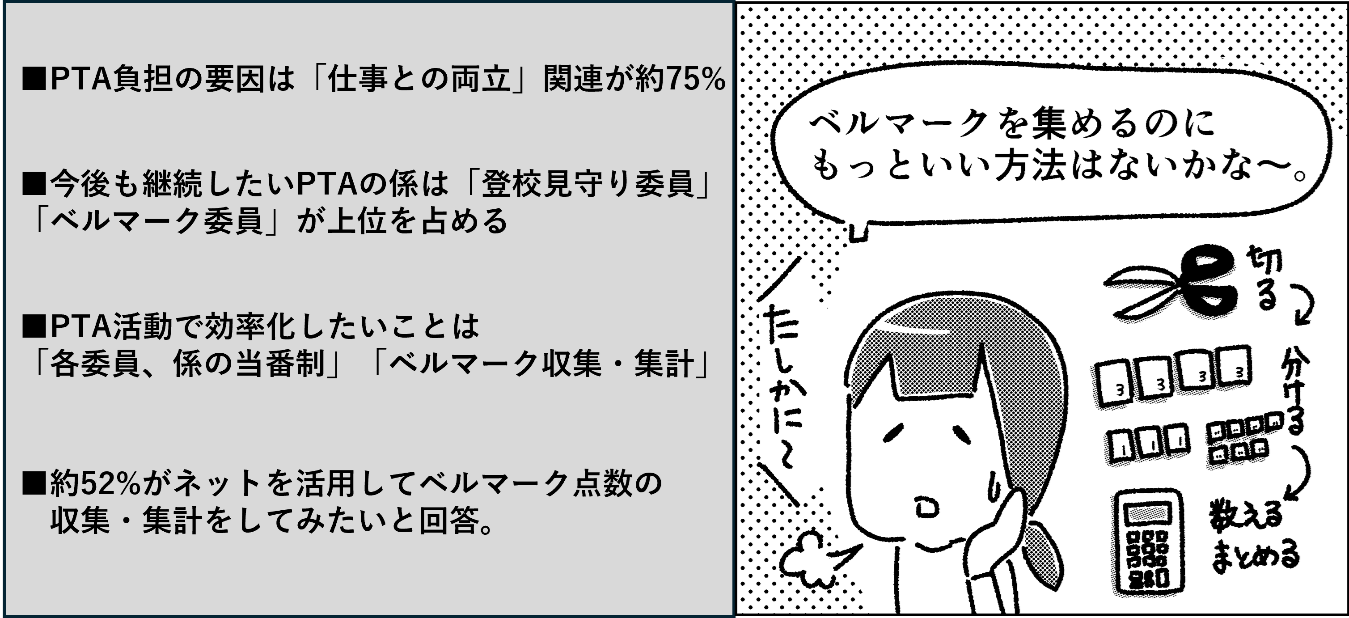 「PTA活動の中で効率化したいこと」 「ベルマーク運動の効率化」