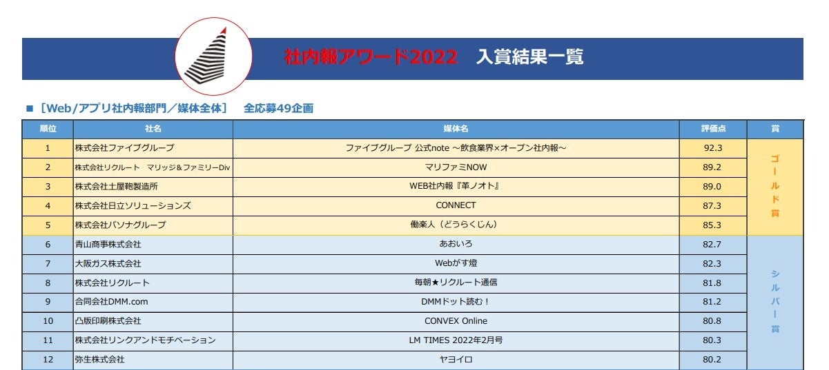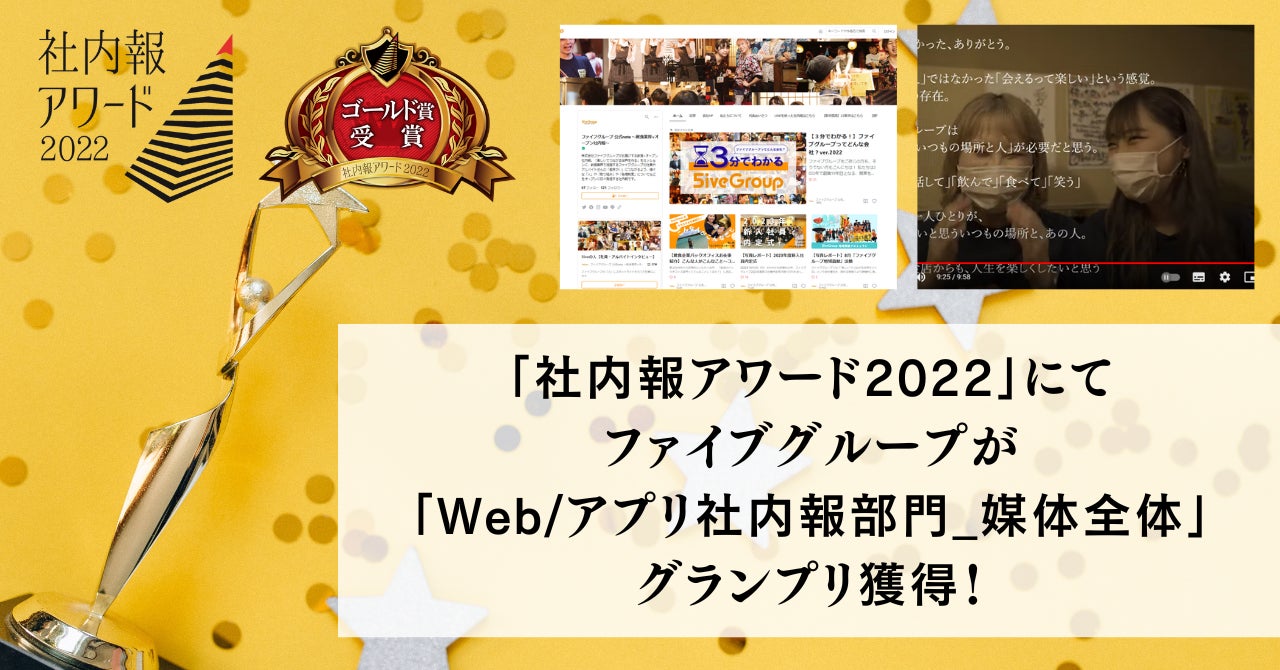 「社内報アワード2022」にて「ファイブグループ 公式note ~飲食業界×オープン社内報~」が「Web/アプリ社内報部門_媒体全体」グランプリを獲得!