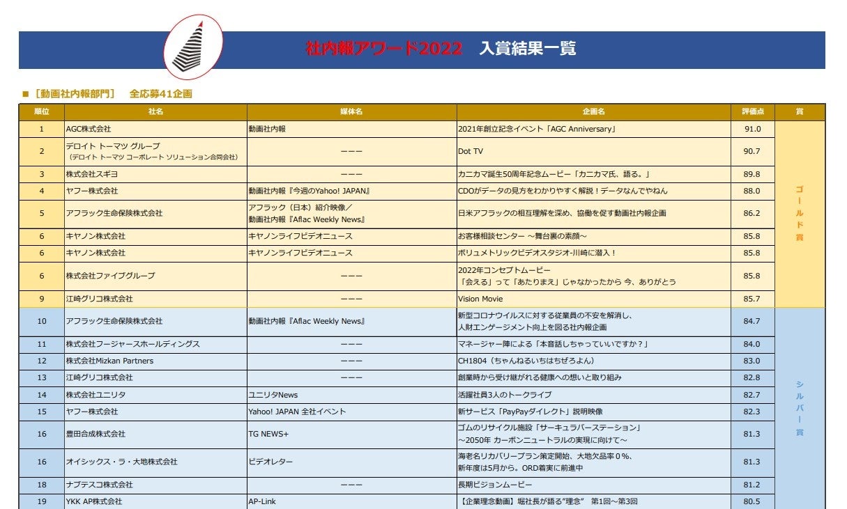 数多くの著名企業が並ぶ中、初エントリーの一昨年にはブロンズ賞、昨年にはシルバー賞を受賞しており、今年はついにゴールド賞、そしてグランプリを獲得しました。グランプリ獲得の「Web/アプリ社内報部門_媒体全体」では明確な目的設定と、1媒体を1人体制で多方面のステークホルダーにアプローチし、経営課題の解決に直結させていく設計が評価されました。