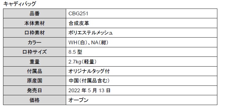 『CBG251』は、ダブルステッチを基調としたシンプルデザインでスリムなシルエットながら、大小さまざまな7つの収納ポケットを装備しています。活況なレディス市場の中でより幅広い世代の女性ゴルファーに向けたモデルです。当社はゴルフにおける様々な“接点”を、タイヤ開発で培われた独自の解析やシミュレーション技術などを活用し「接点を科学」することで、ユニークな商品開発やサービス提供に繋げ、ゴルファーの皆様にワクワク感や笑顔、感動をお届けしていきます。