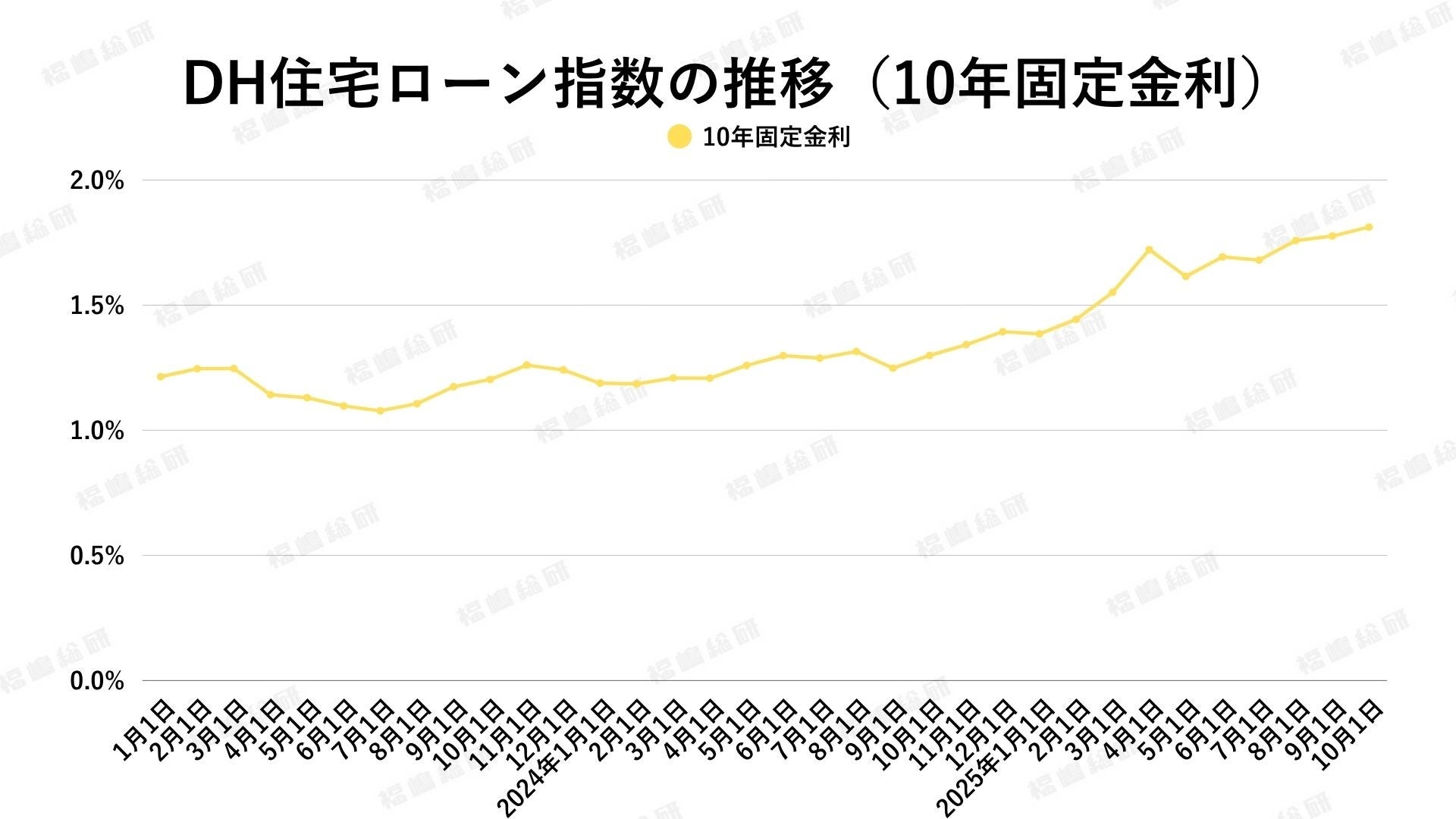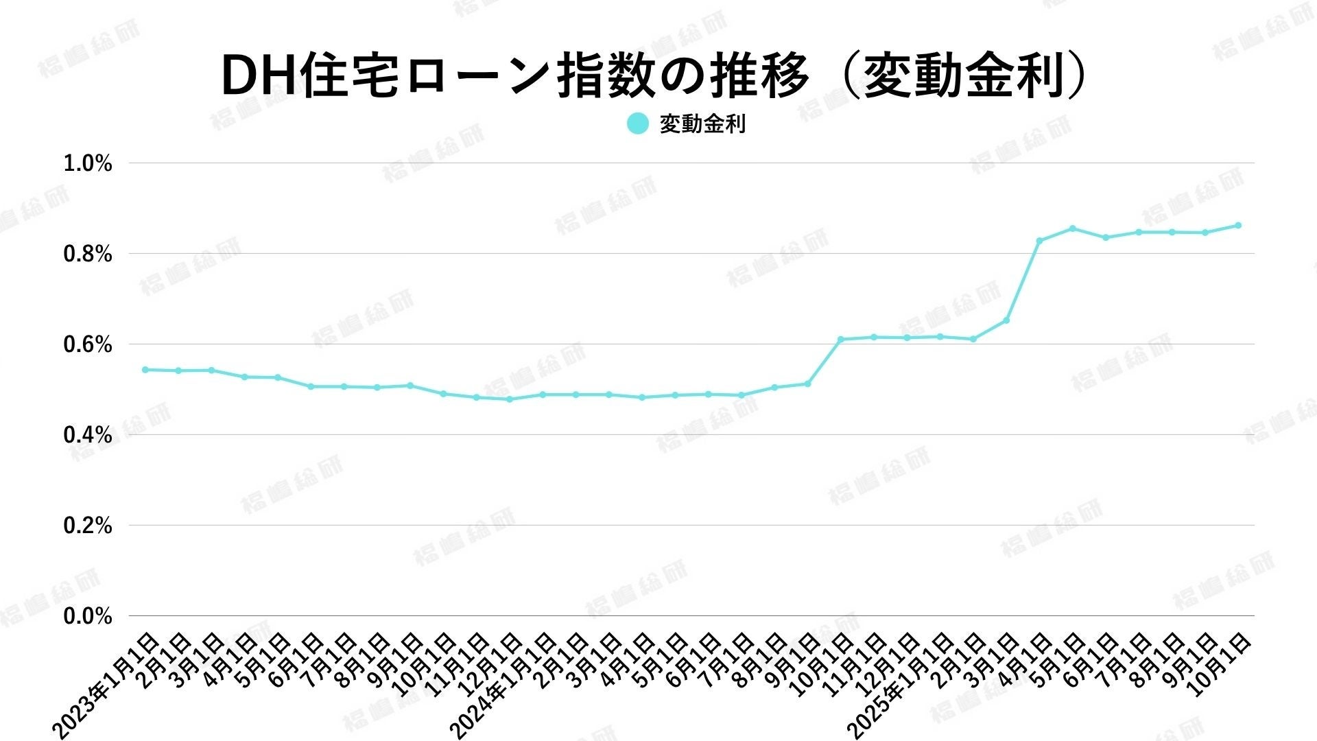 10月1日時点においては、DH住宅ローン指数の変動金利は、0.862%と前月よりわずかに上昇し、かつ前年同月の0.610%よりも上昇しています。上昇傾向トレンドであることは間違いないと考えています。