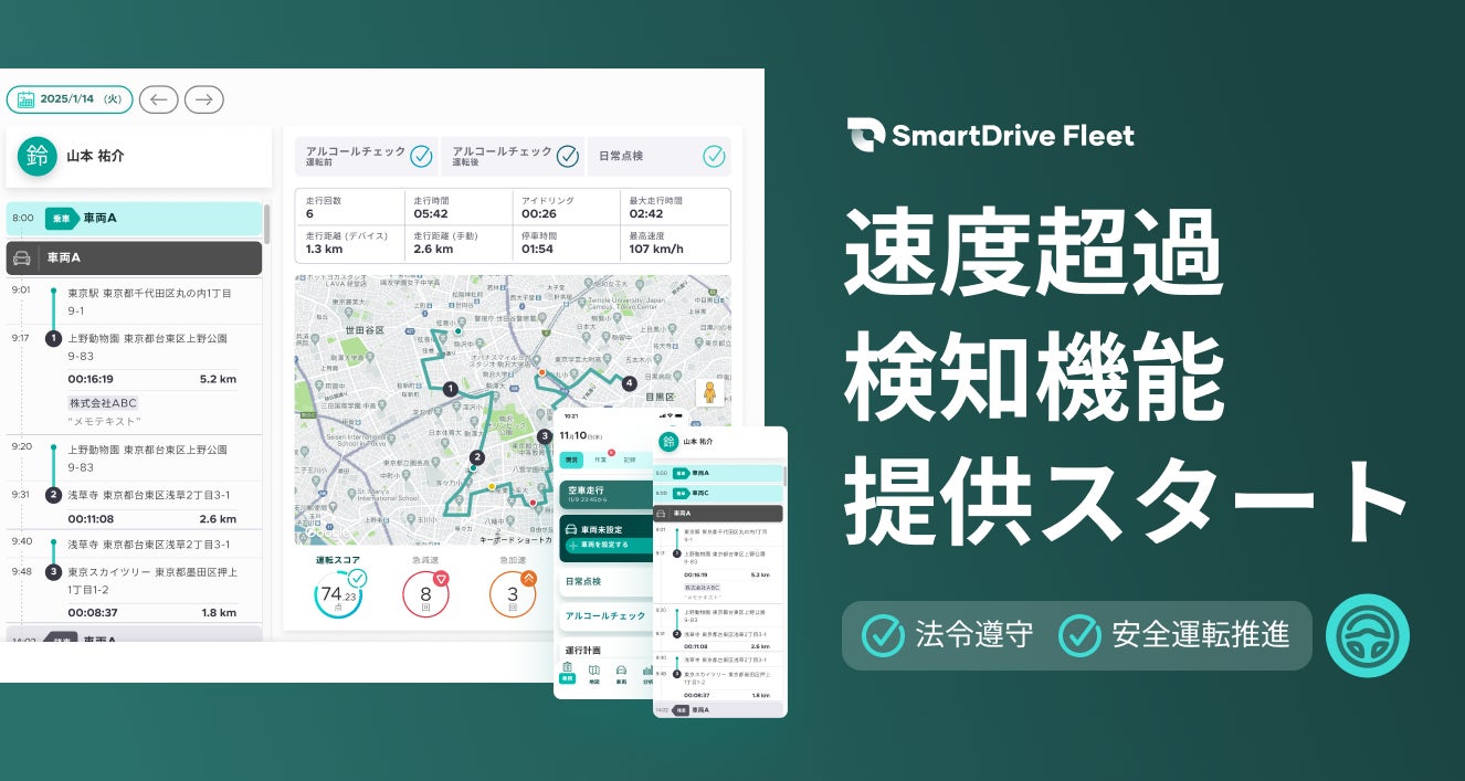 「SmartDrive Fleet」、道路ごとの法定速度に対する『速度超過』検知機能を提供開始
