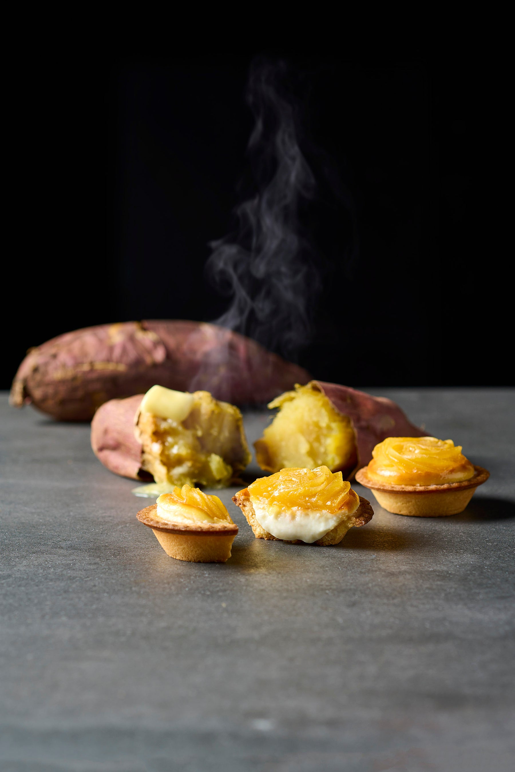 濃厚な甘みと香りが特徴のさつま芋「紅あずま」を使用した季節限定フレーバーです。チーズムースの上にさつまいもクリームを絞り、最後にバターを乗せて焼き上げました。しっとりほくほくの甘いさつまいもにじゅわっと染み込んだバターが香る秋の味覚をぜひお楽しみください。