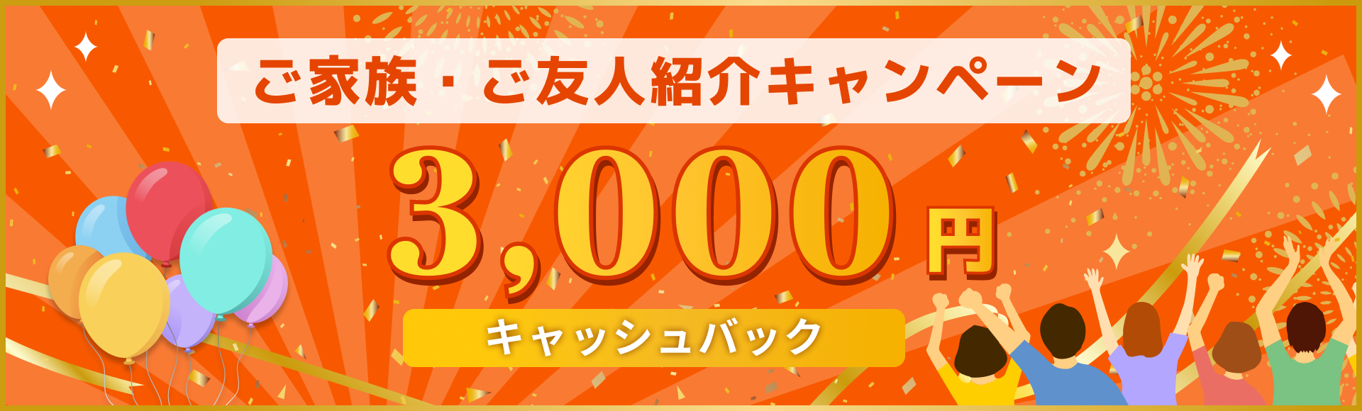 ご紹介されたご家族・ご友人の方も初月料金より3,000円キャッシュバック(*)
