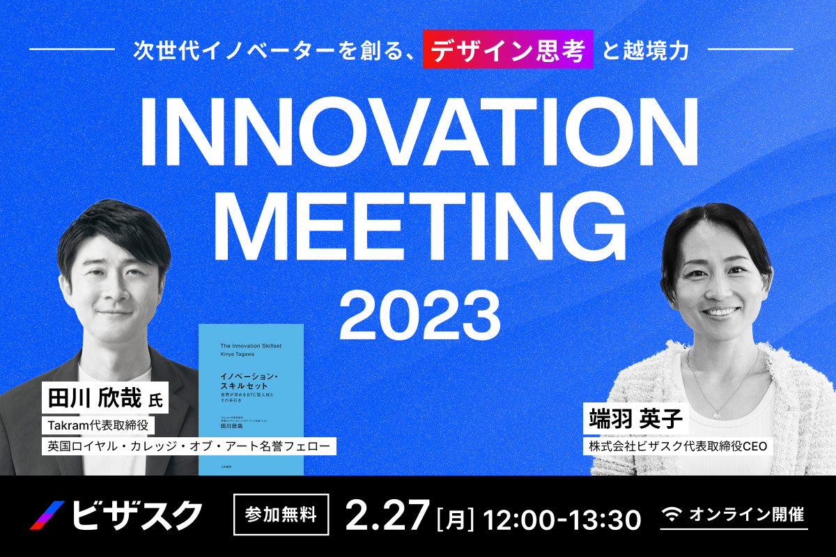 【2/27(月)12時】Takram田川氏×ビザスク端羽 登壇「INNOVATION MEETING 2023」デザイン思考に関する特別対談イベントを開催