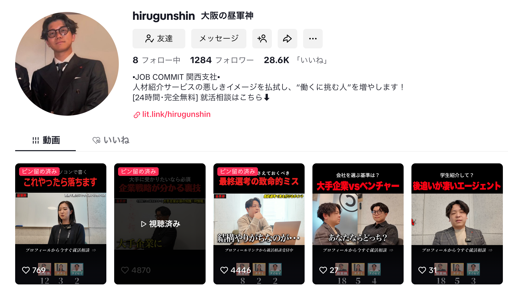 「大阪の昼軍神」(@hirugunshin)のアカウントでは、人材紹介サービスの悪しきイメージを払拭するための情報や就職活動における情報を発信中です。