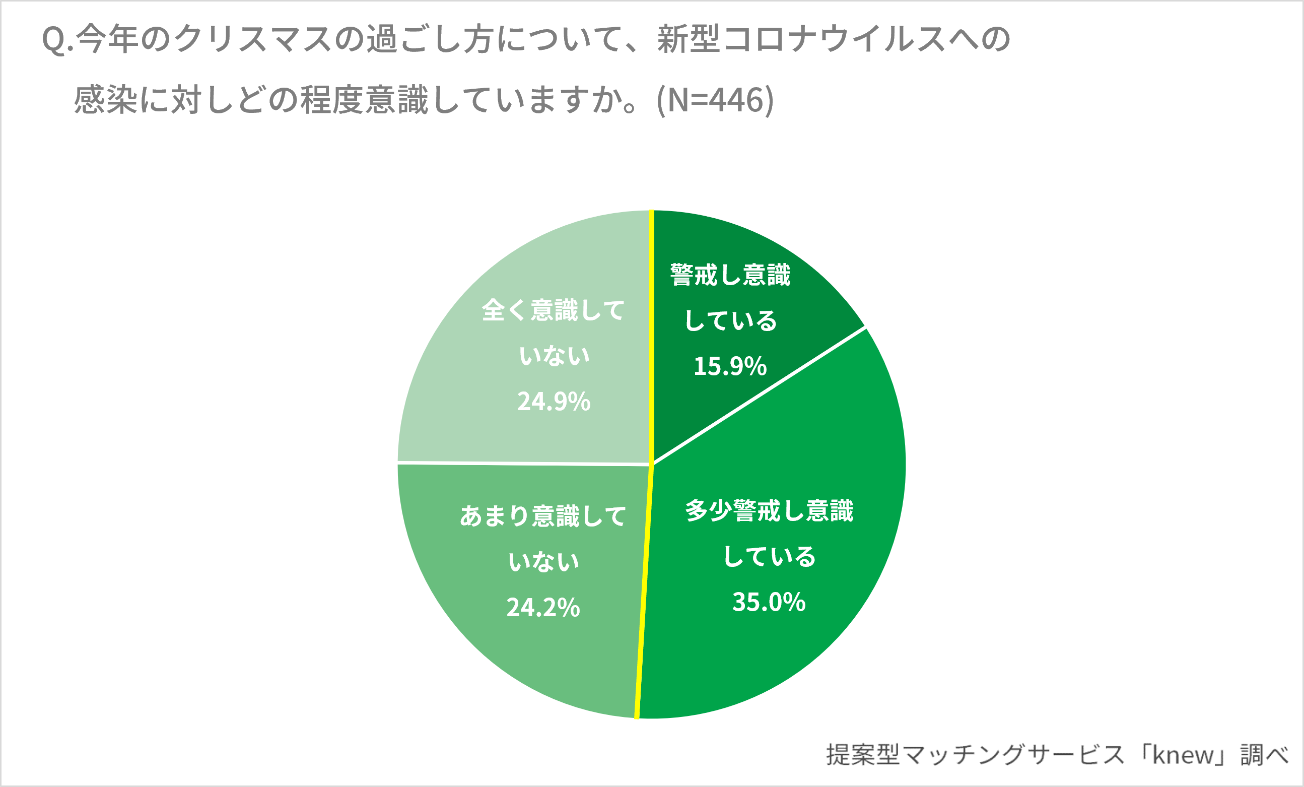 - クリスマスの時期に新型コロナの感染対策についてどの程度意識するか、「意識する」人が50.9%、「意識しない」人が49.1%。ほぼ半々