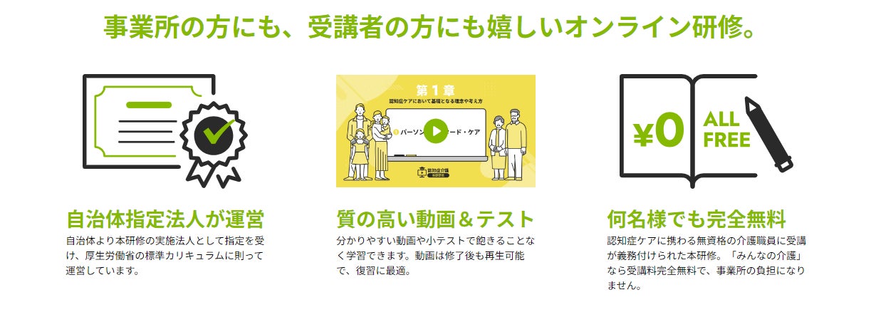 【みんなの介護】受講料完全無料!認知症介護基礎研修Eラーニングシステムを開発 9つの自治体で運用開始中