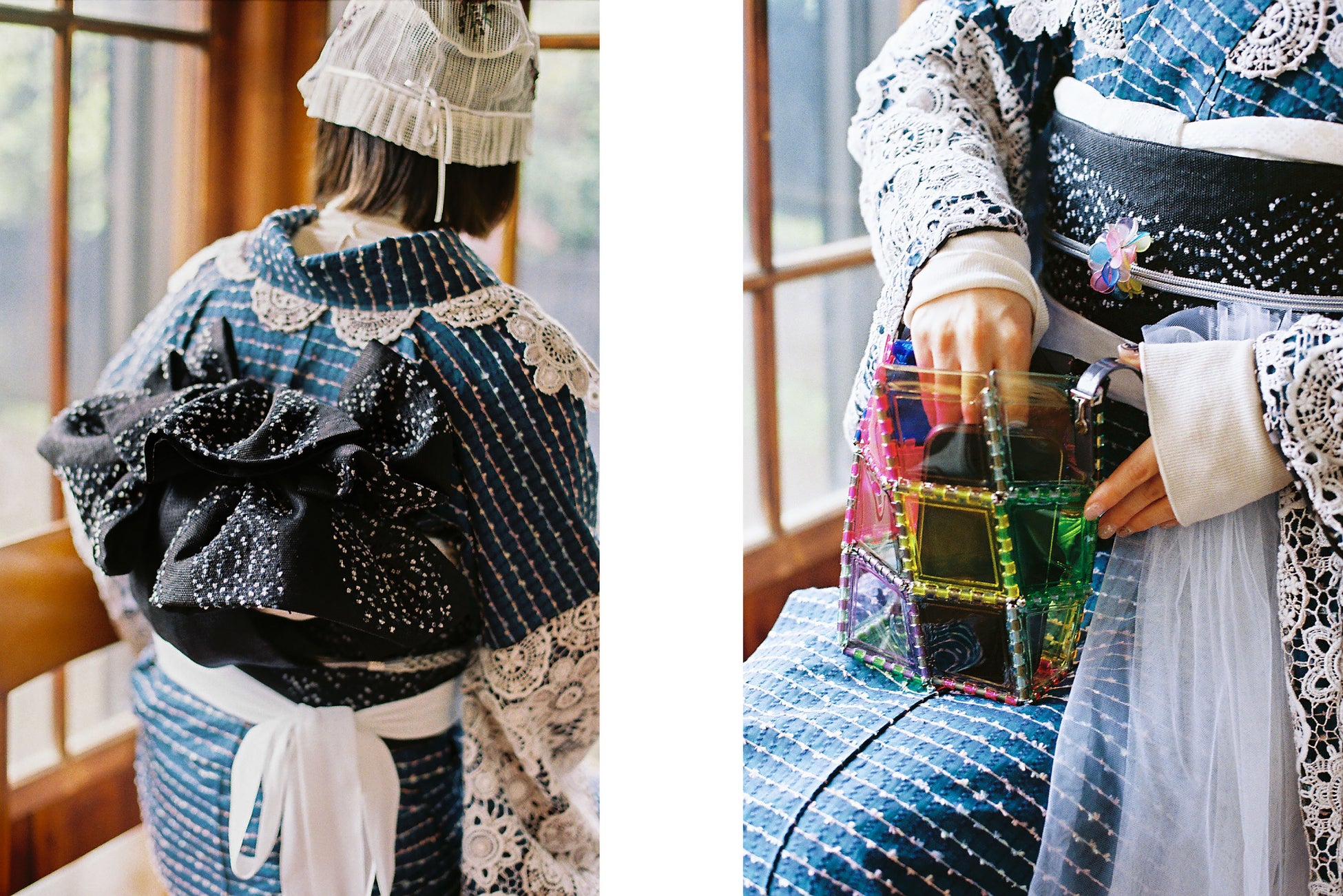 小さな頃から好きなものを集めてきた宝箱。そんな宝箱の思い出を表現したふりそでです。
