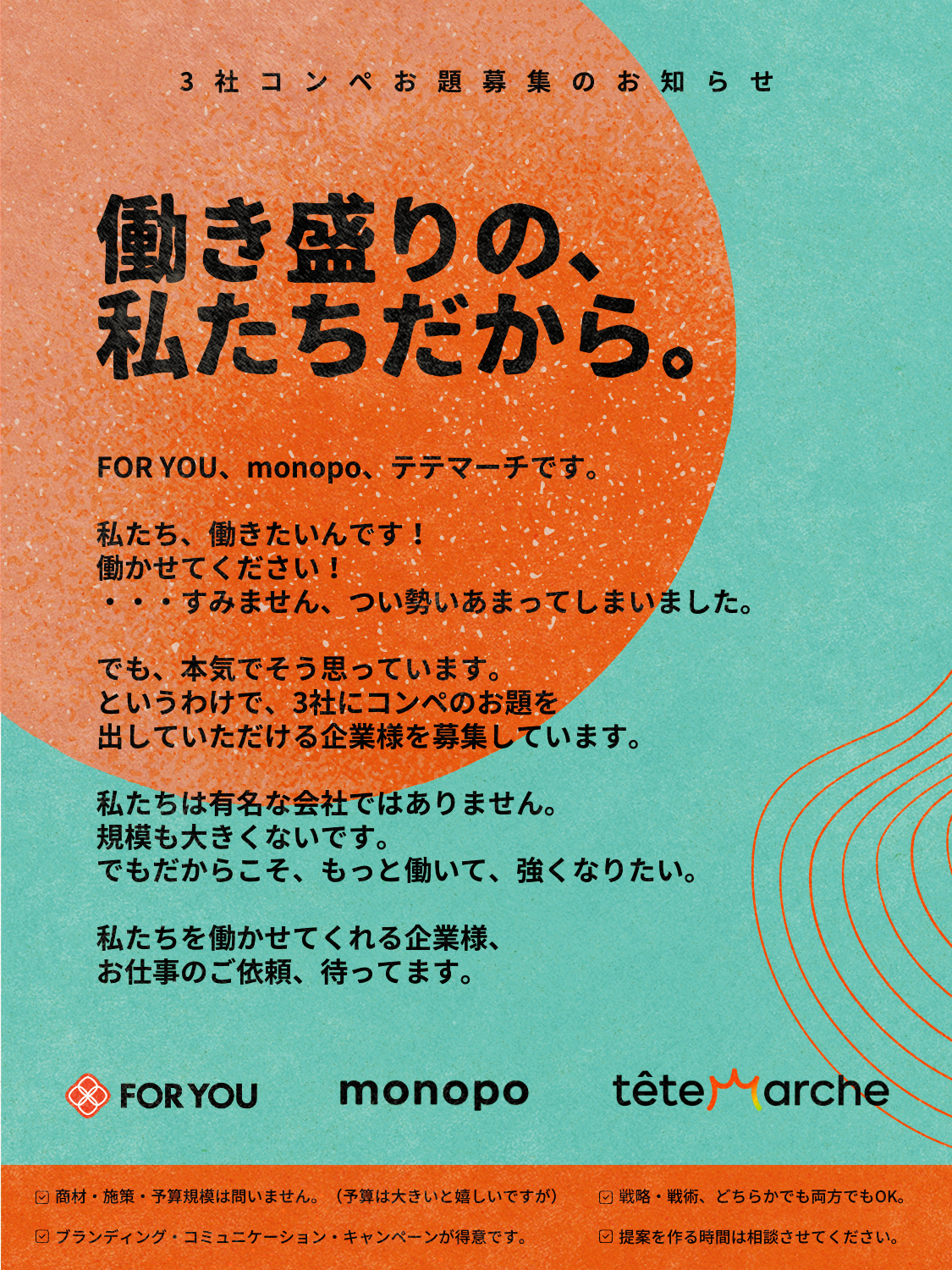 先着5社限定!【FOR YOU・テテマーチ・monopo】3社コンペ実施のお知らせ