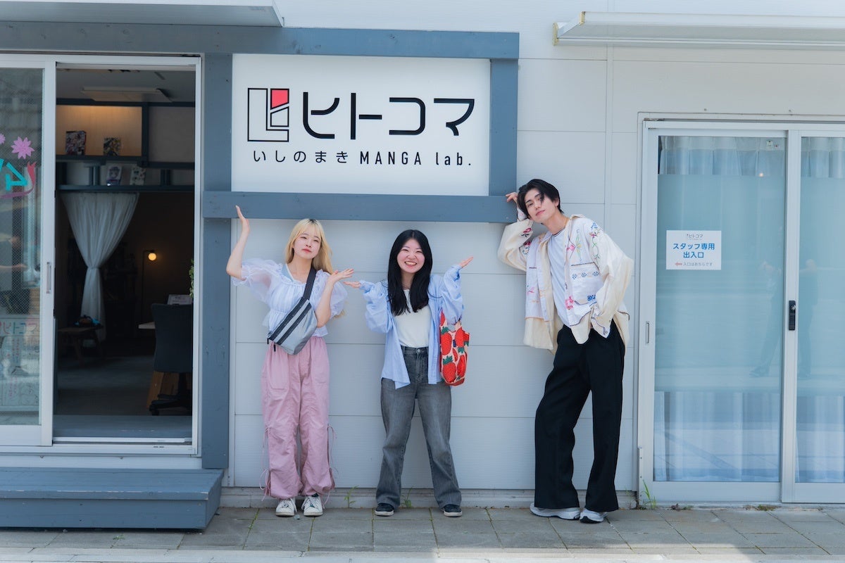 マンガやアニメ好きの人たちのための創作・交流活動の拠点「いしのまき MANGA lab. ヒトコマ」での仕事体験。子どもたちとも“マンガ好き”同士、すぐに仲良く!