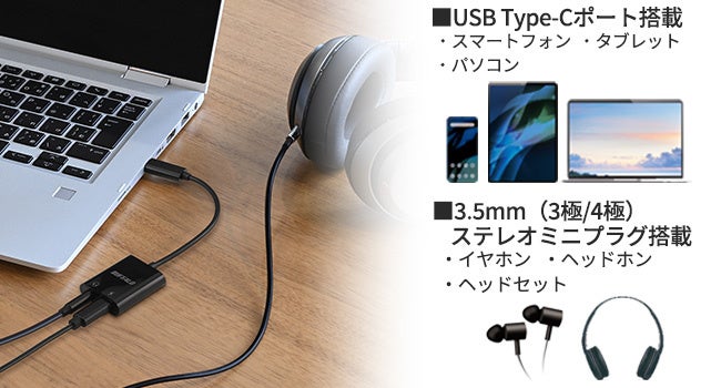 本商品は、イヤホンジャックのないスマートフォンやパソコンのUSB Type-C端子に接続するだけでお気に入りの有線イヤホンやヘッドホン、ヘッドセットが使えるようになるオーディオ変換アダプターです。また、最大100Wまでの電源供給に対応したUSB PD 給電ポートを搭載しており、端末を充電しながらイヤホンやヘッドセットを使うことができます。これにより、オンラインミーティングや音楽・動画鑑賞の際に充電を気にすることなくお使いいただけます。