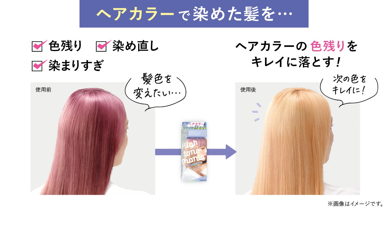 ハイトーンマニアの中で、最も注目していただきたい商品です。ヘアカラーしてからしばらく経って色残りが中途半端な時、ヘアカラーが思った色にならなかった時、ヘアカラーの色残り(残留)を落として次のヘアカラーをきれいに楽しみたい方におすすめです。