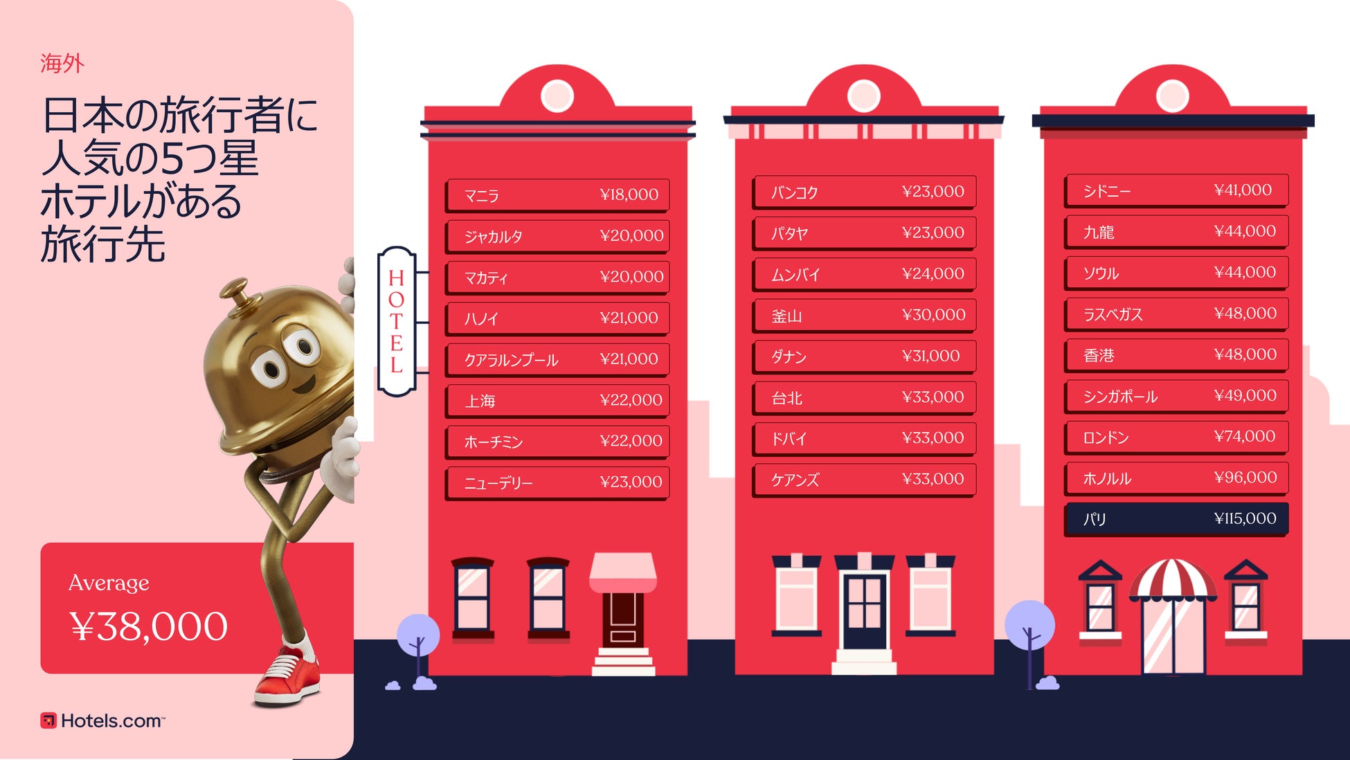 海外の5つ星ホテルは国内のホテルと比べて宿泊費が平均24%お得 Hotels.com、「ホテル価格指数レポート2025」を発表