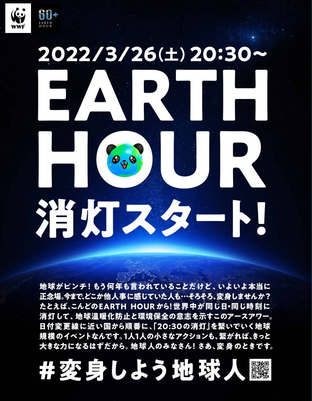 会長:末吉竹二郎、以下WWFジャパン)は、2007年から開催されている世界各地を消灯のリレーでつなぐ世界最大級の消灯アクション「EARTH HOUR(アースアワー)」を、2022年3月26日(土)20:30~21:30に実施いたします。